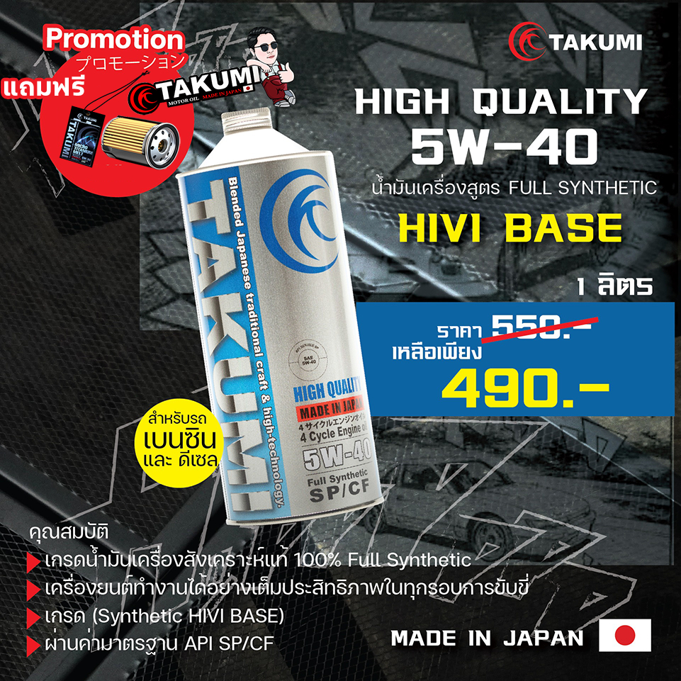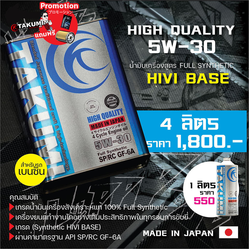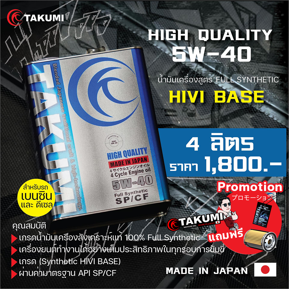น้ำมันเครื่อง TAKUMI รุ่น HIGH QUALITY (5W-30 + 5W-40) 1-4 ลิตร