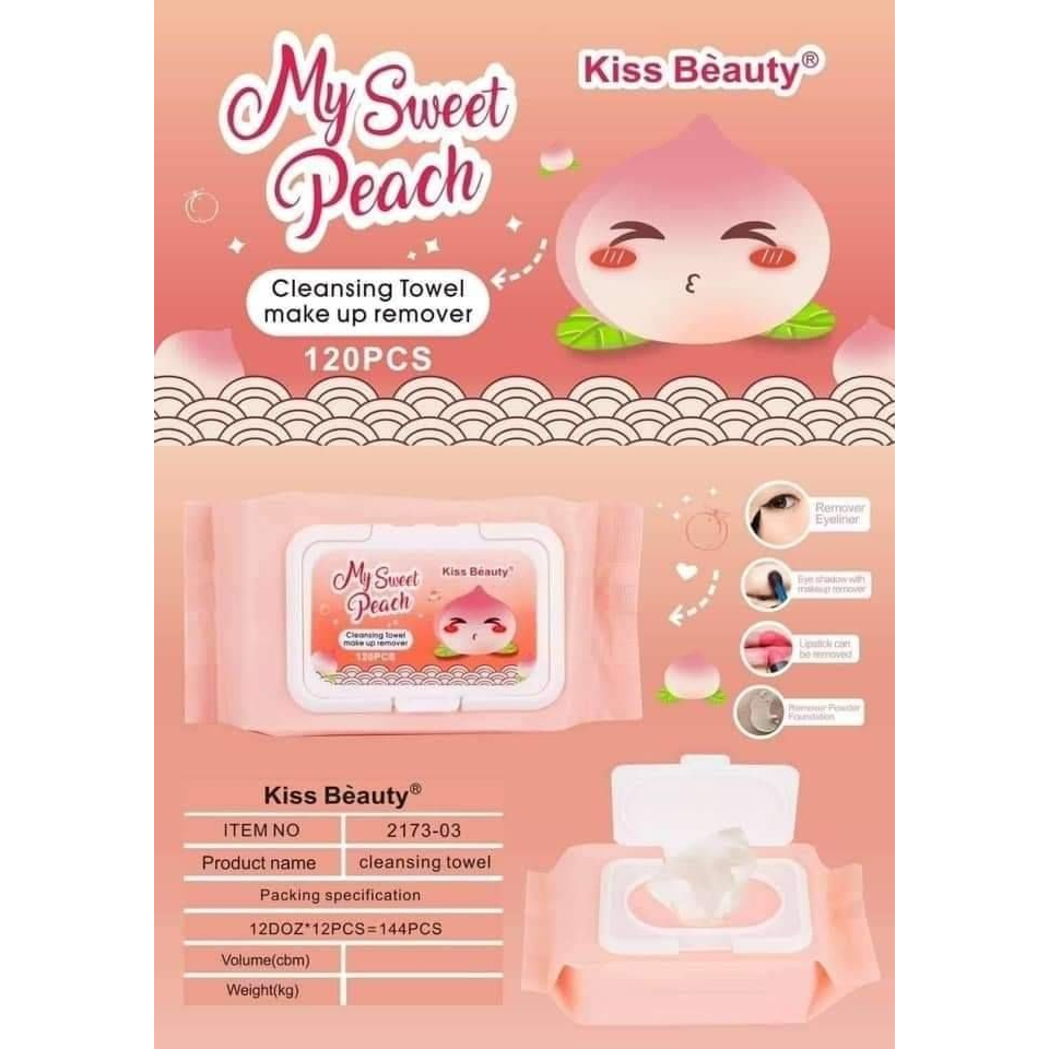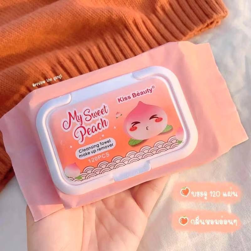 Kiss Beauty ทิชชู่เปียกเช็ดเครื่องสำอางค์ Peach เมคอัพ รีมูฟเวอร์ ทิชชู่เปียกเช็ดหน้า กลิ่นลูกพีช🍑 120 แผ่น