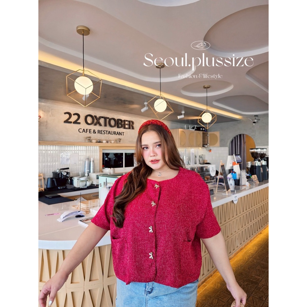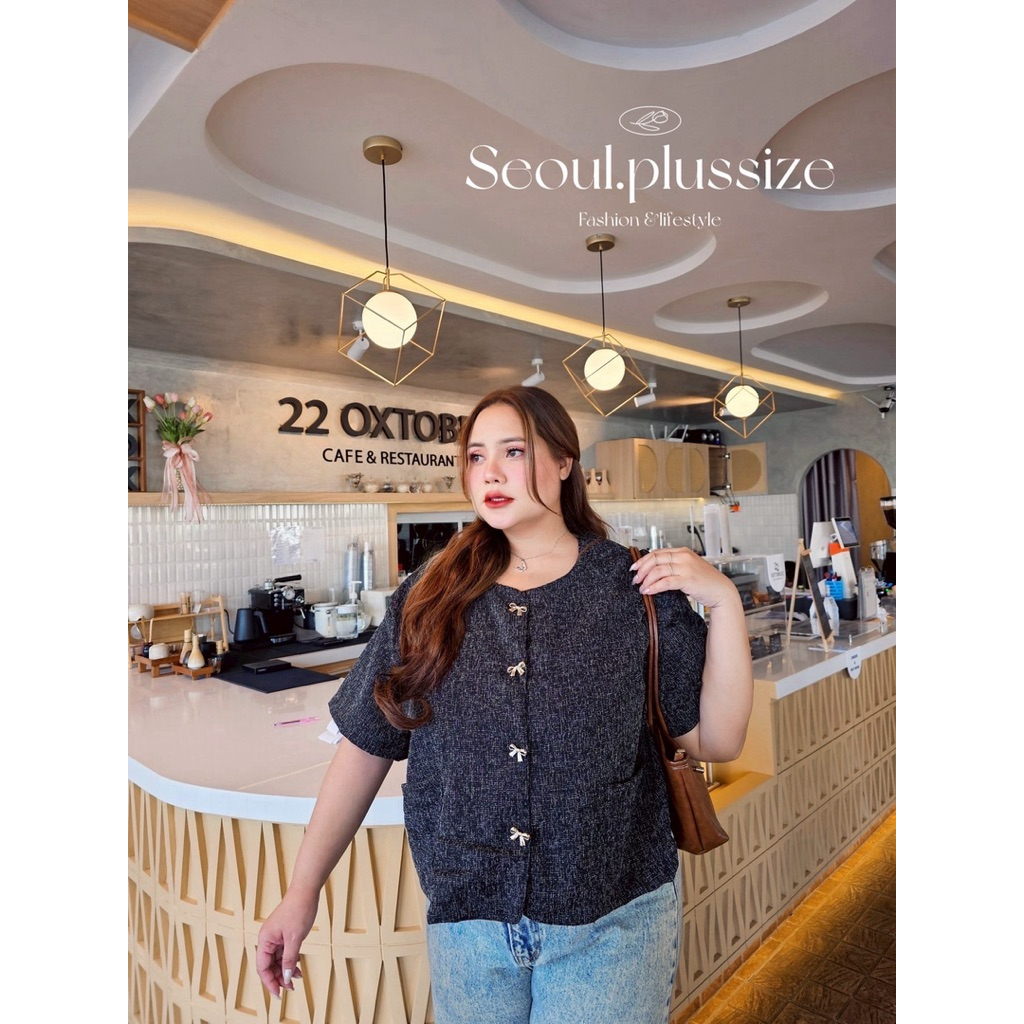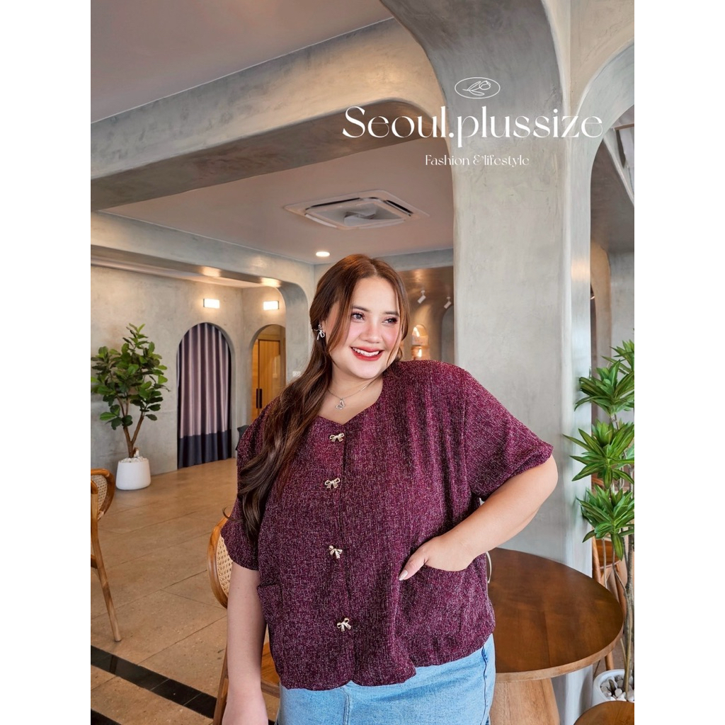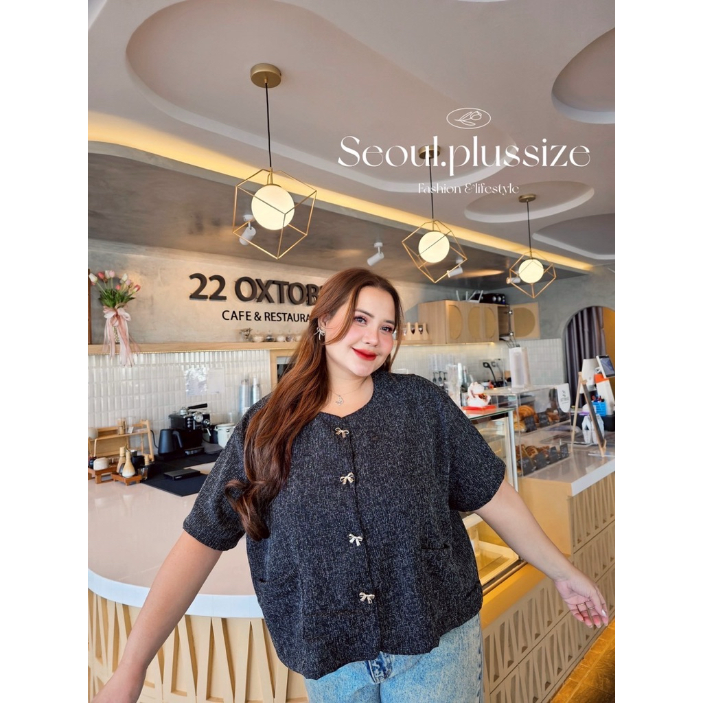 TWEET TOP เสื้อคลุมคอกลมผ้าทวิต เนื้อนิ่ม ไม่สาก ทรงสวยผ้าดี bigsize ตัวใหญ่ๆ ดีเทลแต่งกระเป๋าหน้า2ข้าง กระดุมโบว์สีทอง สีตัดเข้ากันสุดๆ #งานจริงสวยพรีเมียมมากค่ะ✨