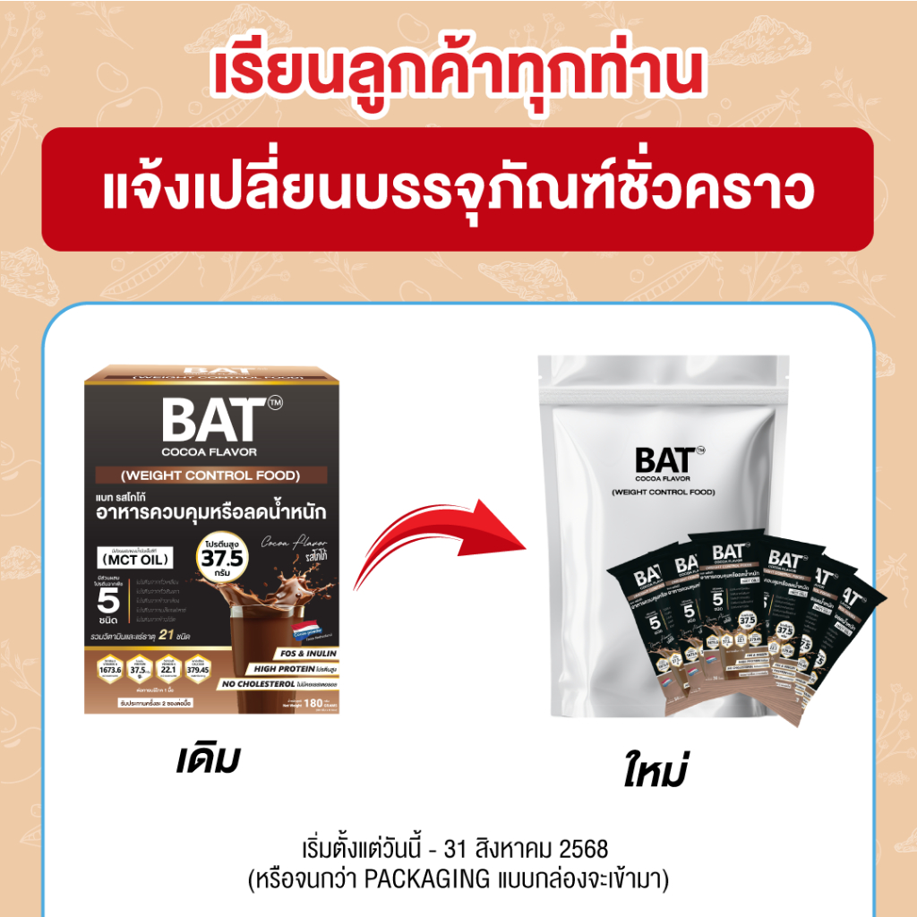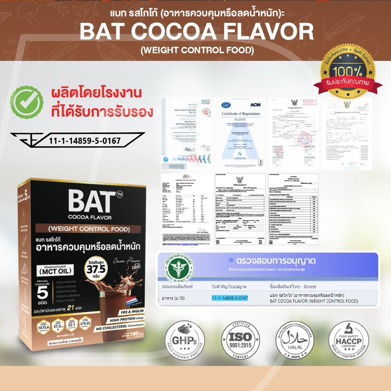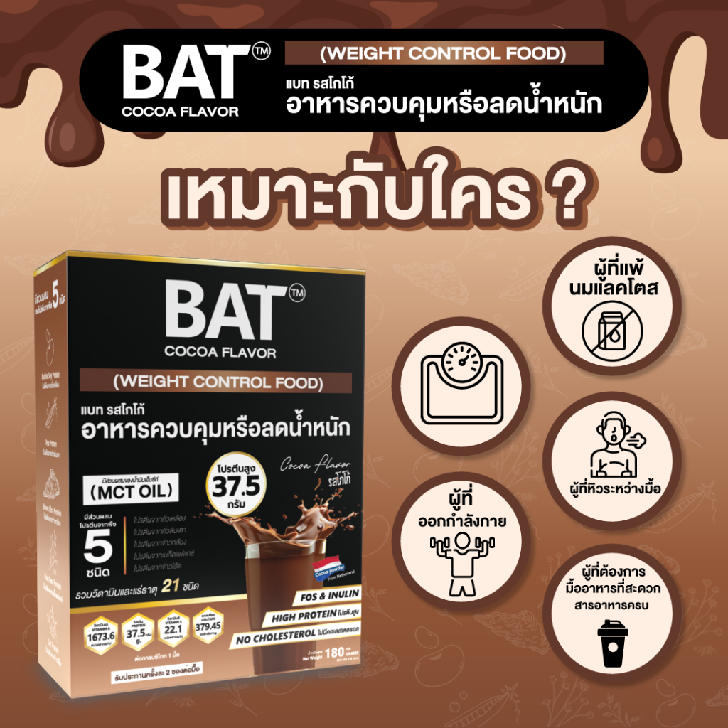 BAT™️ อาหารควบคุมหรือลดน้ำหนัก ทดแทนมื้ออาหาร รสโกโก้