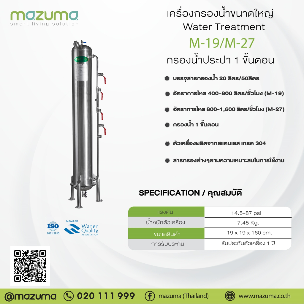 (สินค้าตัวโชว์สภาพดี) Mazuma เครื่องกรองน้ำใช้สแตนเลส รุ่น M19-122-20LN