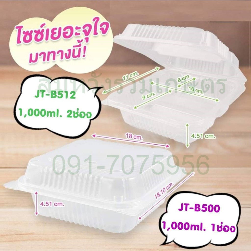 กล่องพลาสติกใสใส่อาหารสีใสฝาปิดในตัว JT-B500 1000ml 1ช่อง