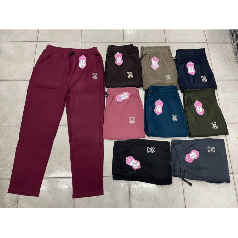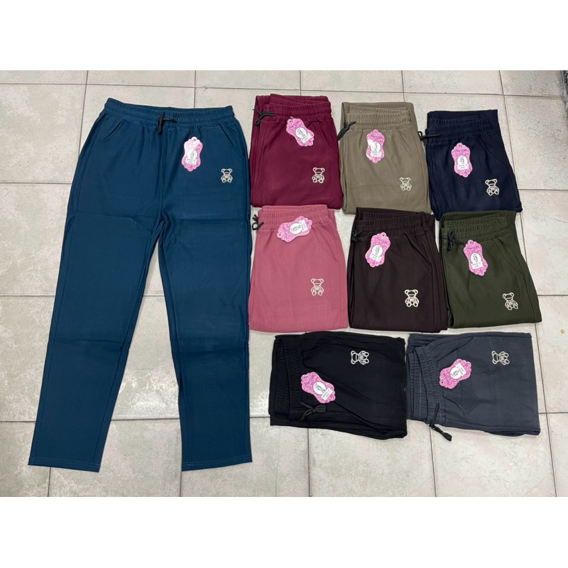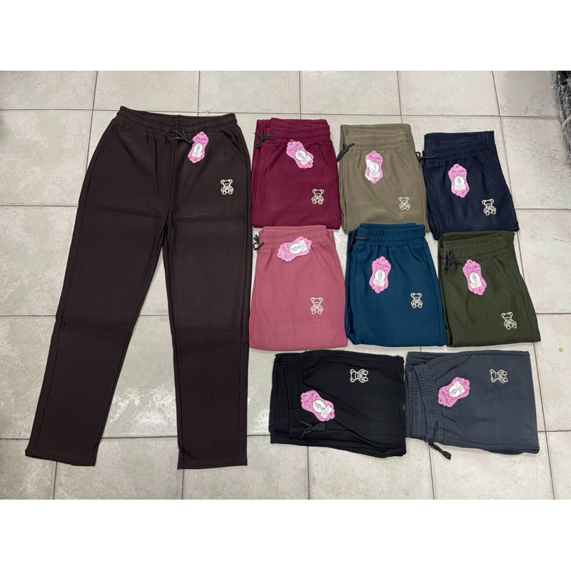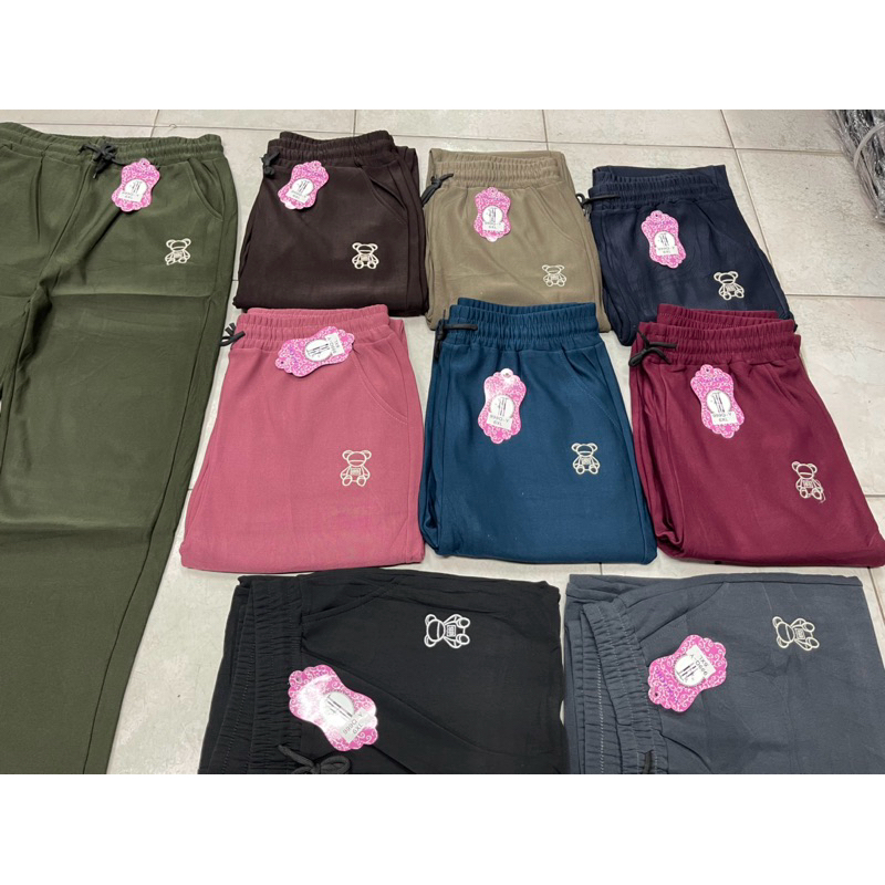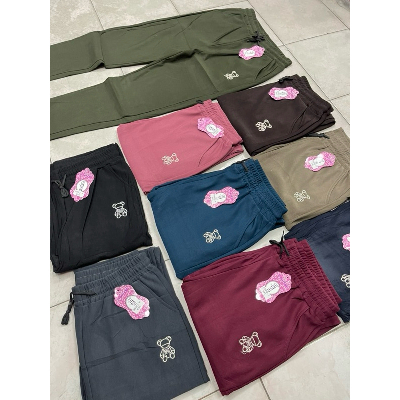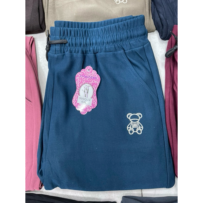 วอร์มขายาวผ้ายืดเกาหลีใส่สบายปักหมี มีกระเป๋า2ข้าง 999Q-Y