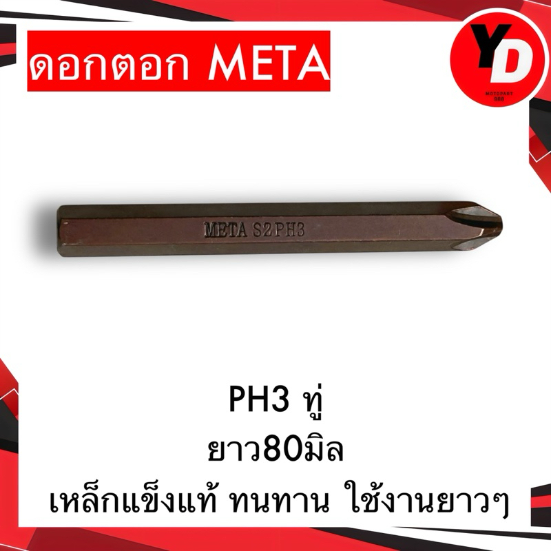 หยิบใส่ตะกร้าดอกไขควงตอก (5ตัว) ปากแฉก PH2 PH3 CRvแม่เหล็ก METAแท้