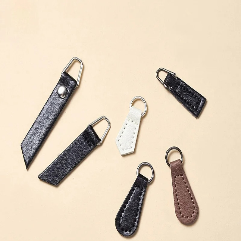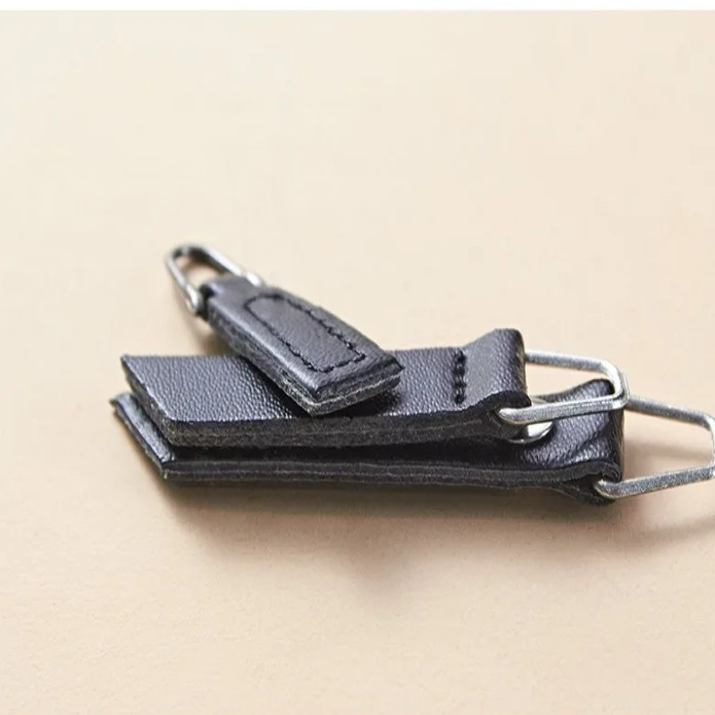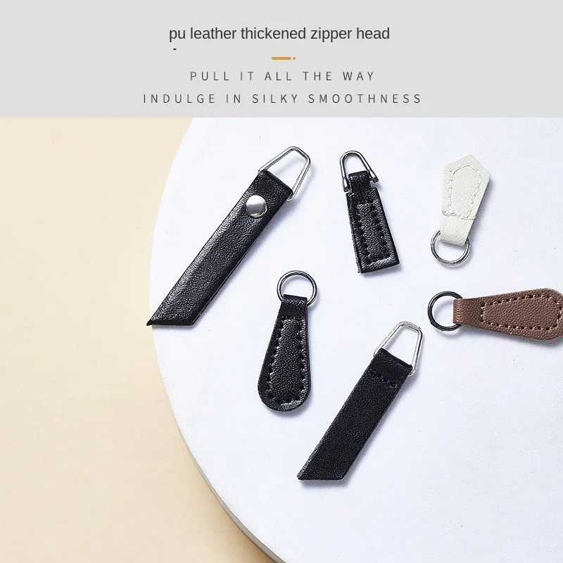 1ชิ้น ปู่ หนังป้ายกระเป๋าเสื้อผ้าหนังดึงชิ้นซิปหัวดึงหางซองหนังเลื่อน