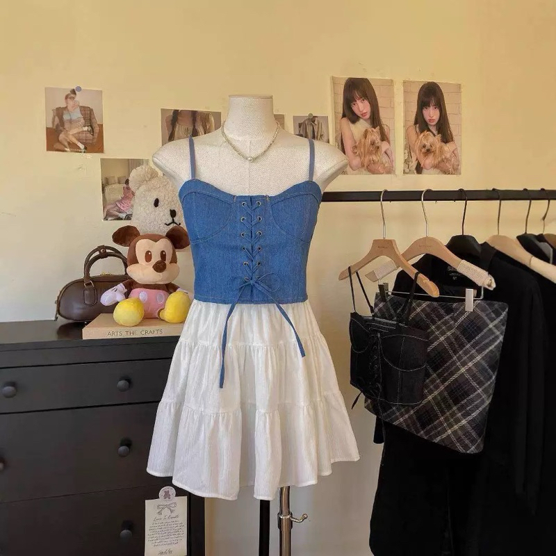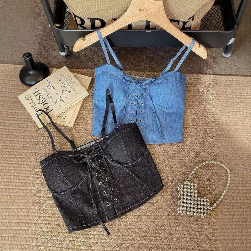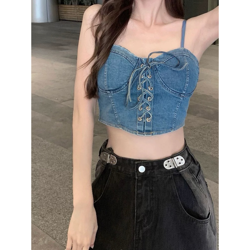 โทนสี เชือกสายผูกอก เสื้อยีนส์ Denim เซ็กซี่