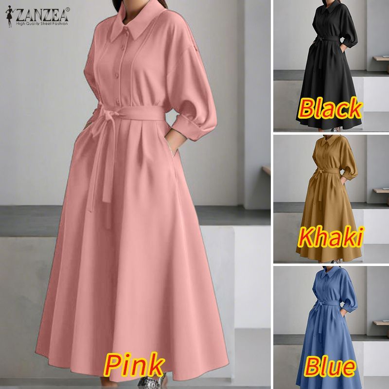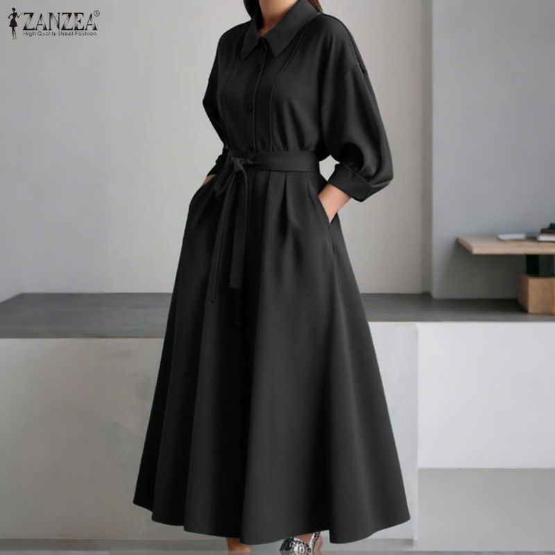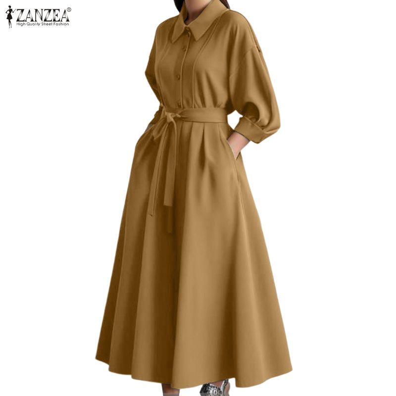 ชุดเดรสเสื้อเชิ้ตแขนยาวสไตล์วินเทจสำหรับผู้หญิง สำหรับฤดูใบไม้ร่วงและหนาว