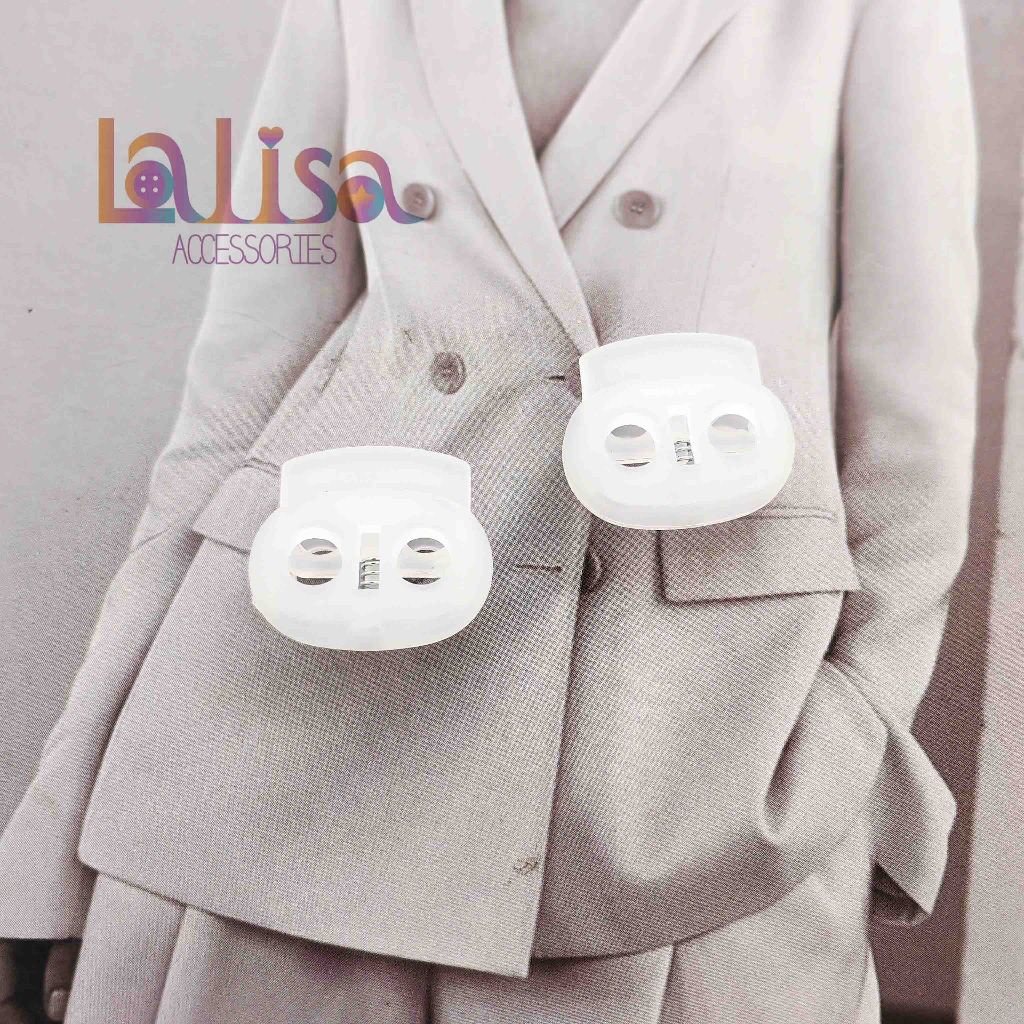 หยิบใส่ตะกร้าตัวล็อคเชือก ตัวหยุดเชือก จมูกหมู stopper ขนาด 22×19 มิล แพ็ค 10 ชิ้น plastic stopper (C-3-B,SZ-124)
