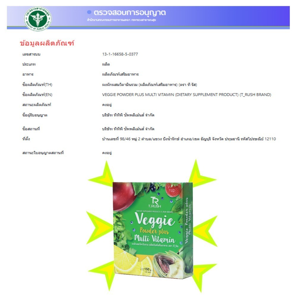 🌽🍇VEGGIE POWDER PLUS MULTI VITAMIN (ผลิตภัณฑ์เสริมอาหาร) ผักผสมวิตามินรวม (*** 3 กล่อง 30 ซอง)