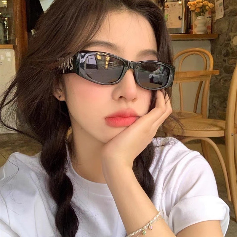 ส่งเร็ว✨ แว่นตากันแดดกรอบสีดําพิมพ์ลายตัวอักษรY2Kสไตล์ฮิปฮอปพังก์แฟชั่นสตรีทสไตล์วินเทจUV400แว่นตาทรงสี่เหลี่ยม -XINYIA1