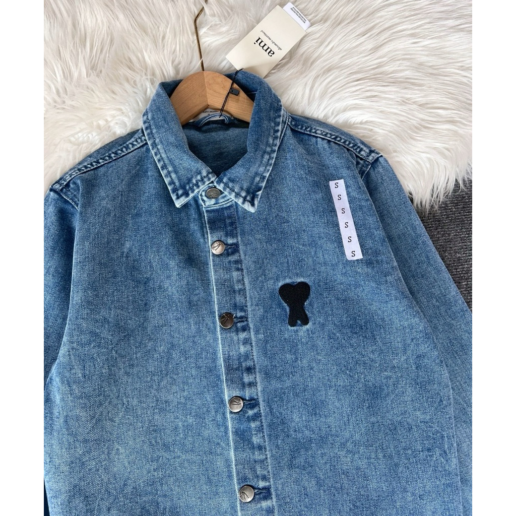 Ami Blue Cotton Jeans De Coeur Shirt เสื้อเชิ้ตผ้ายีนส์นิ่ม ดีเทลงานปักโลโก้สุดน่ารัก สามารถหยิบมาใส่ได้ในทุกๆ วัน จะใส่ตัวเดียวหรือนำมาแมตซ์ใส่คลุมกับเสื้อยืดก็ได้ เป็นไอเทมที่ต้องมีติดตู้ไว้เลย