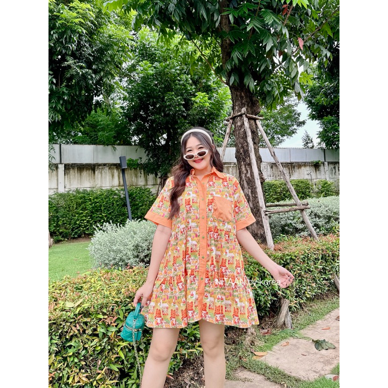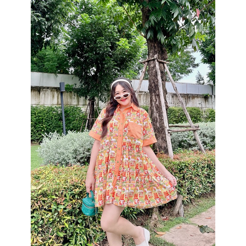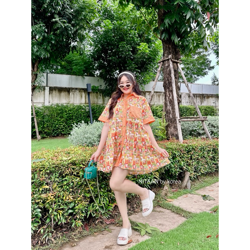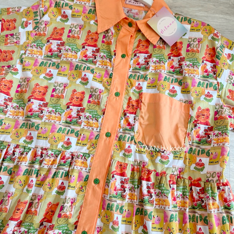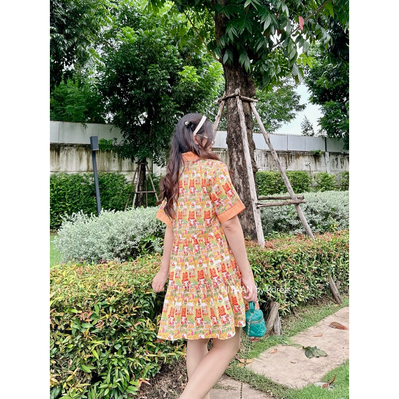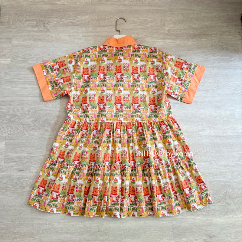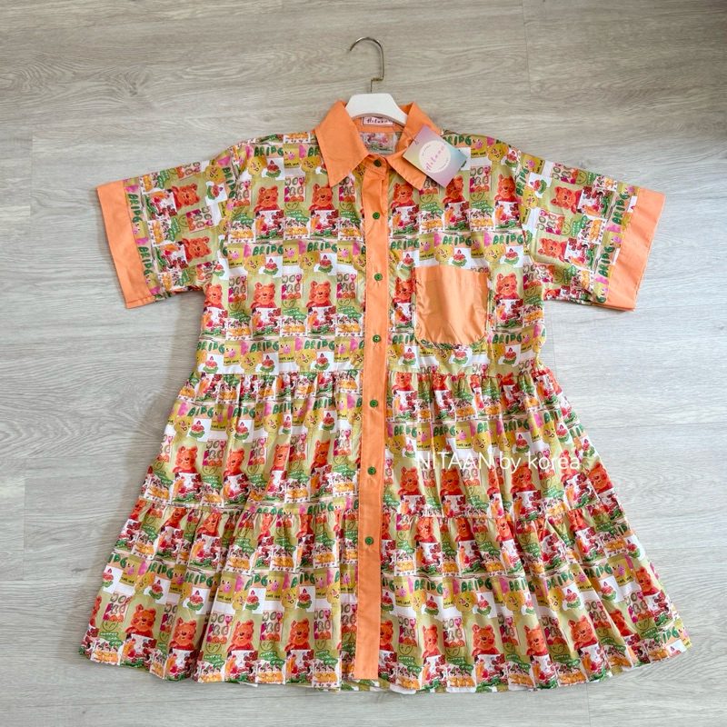 NITAAN 🍯 HONEY BEAR DRESS เดรสผ้าคอตตอนคอปก กระดุมหน้า กระเป๋าอก แถบสีพื้นตัด ทรงลูกคุณน่ารักน่าเยิฟฟฟ (390.เท่านั้นค่ะ ป้ายNITAAN)
