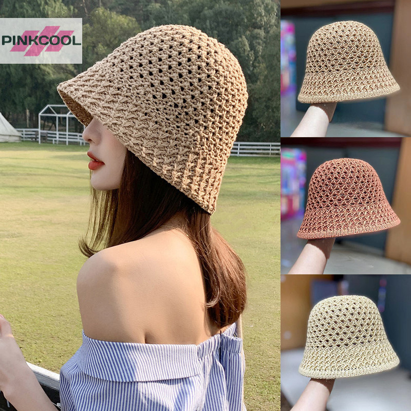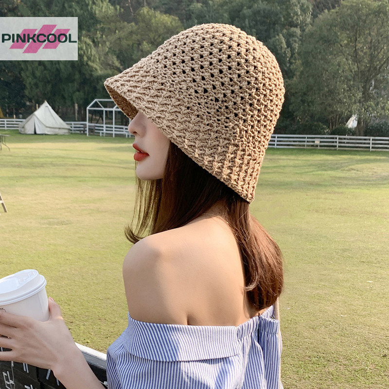 Pinkcool สาวหมวกกันแดดปีกกว้างฟลอปปี้หมวกฤดูร้อนสําหรับผู้หญิงชายหาดปานามาฟางโดมสานหมวก Femme Shade หมวกผู้หญิงหมวกร้อน