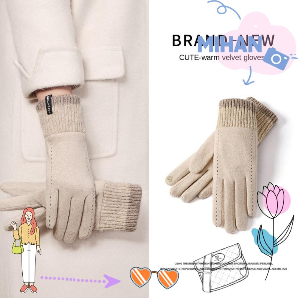 เดือน ถุงมือขนแกะ-เส้น, ถุงมือหน้าจอสัมผัสสําหรับฤดูหนาวปี 2023, ถุงมือผู้หญิงแคชเมียร์ทนความเย็นกลางแจ้งแบบหนาตุ๊กตา