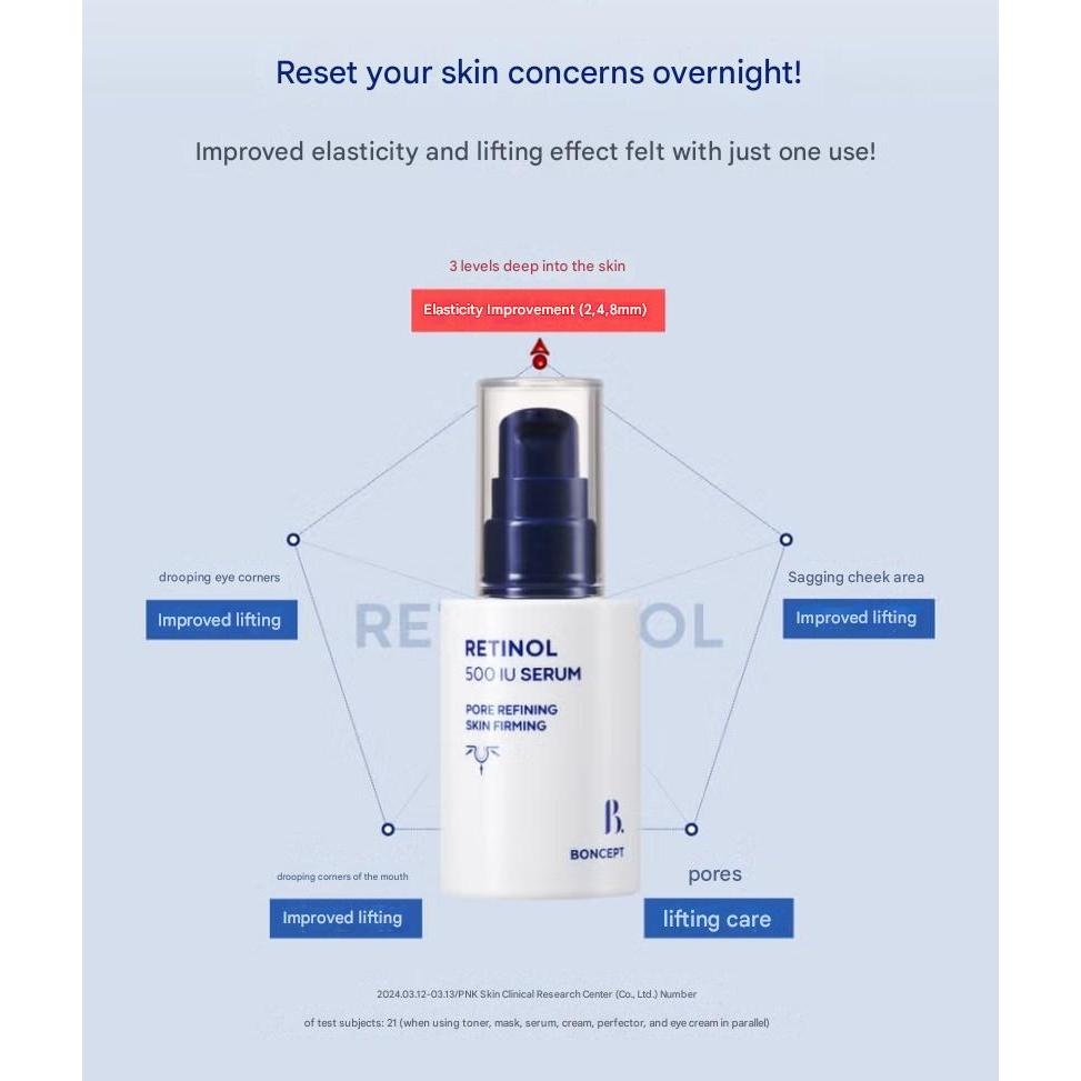 Bcept Retinol 500 IU Serum 30ml – การปรับปรุงริ้วรอย, ซัพพลายความชื้น, การเพิ่มประสิทธิภาพความยืดหยุ่น