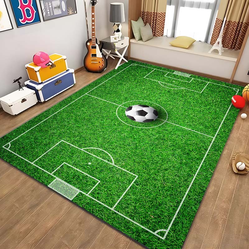 หยิบใส่ตะกร้าพรมสนามฟุตบอลพรมสนามกีฬาพรมสนามฟุตบอลสีเขียวตกแต่งธีมการแข่งขันฟุตบอลเด็กพรมกันลื่นห้องเกมห้องนอน