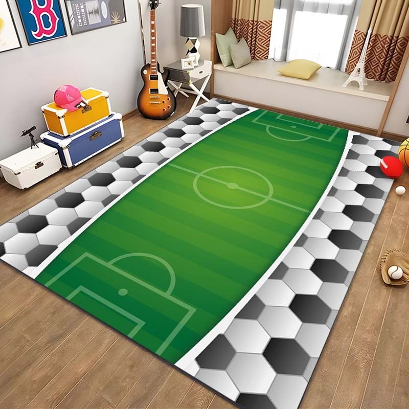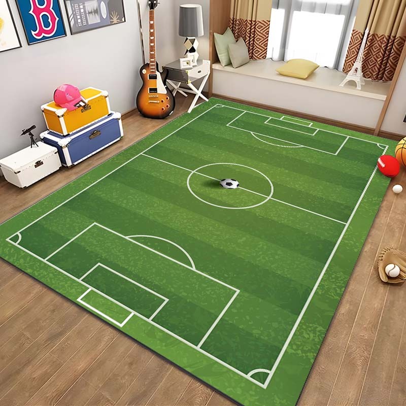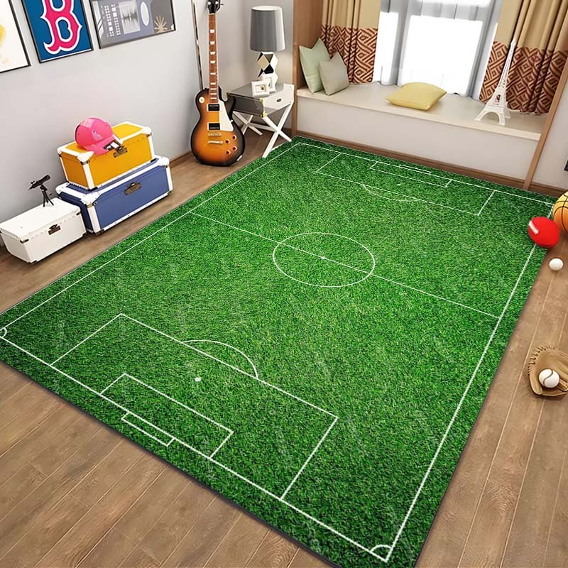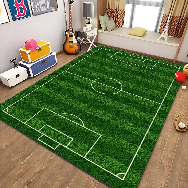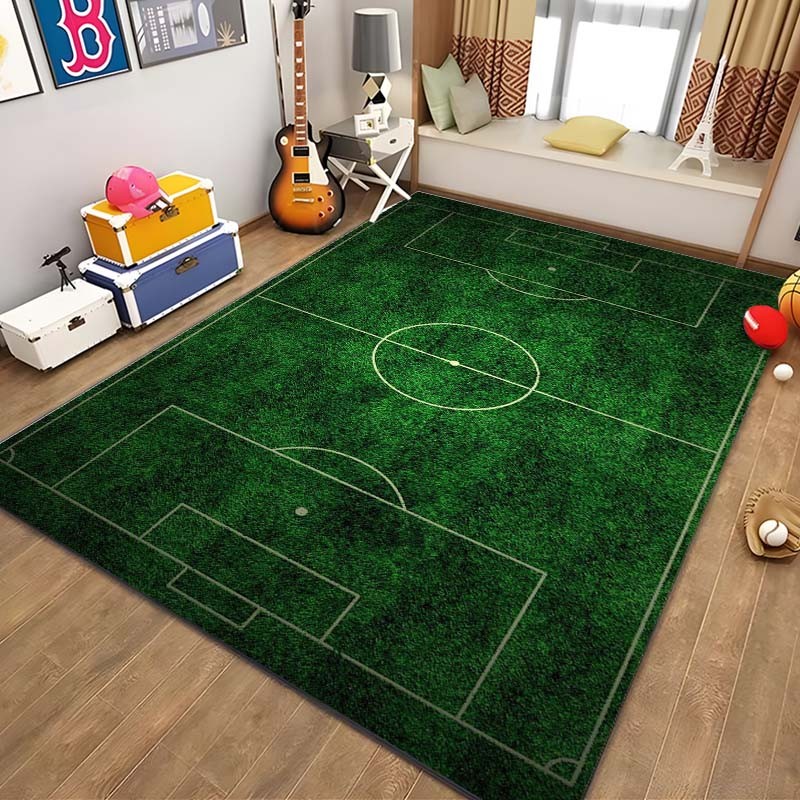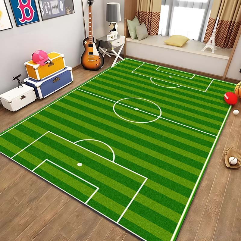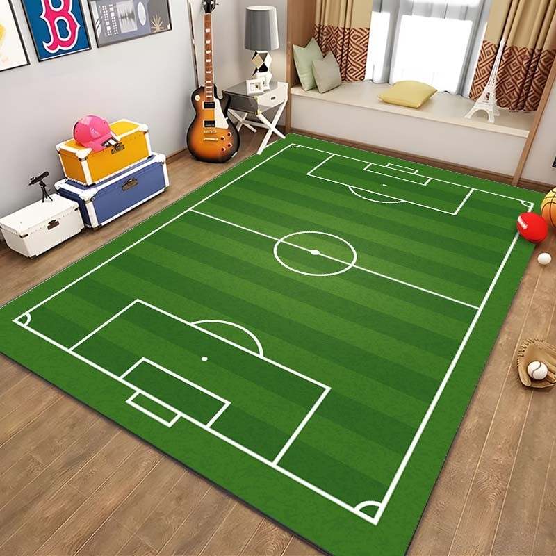 พรมสนามฟุตบอลพรมสนามกีฬาพรมสนามฟุตบอลสีเขียวตกแต่งธีมการแข่งขันฟุตบอลเด็กพรมกันลื่นห้องเกมห้องนอน