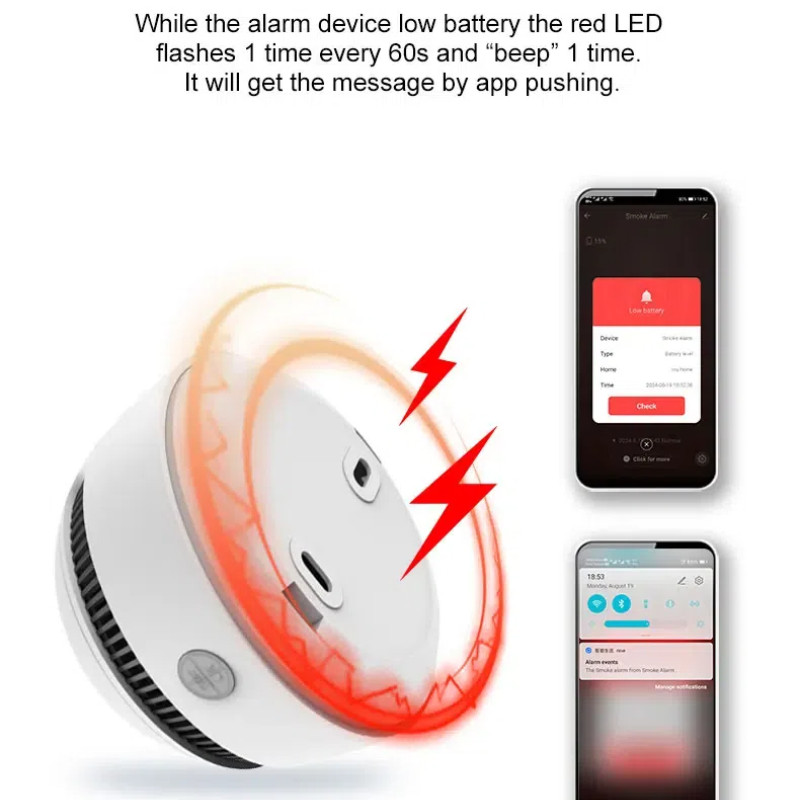 S08 Tuya Smart WiFi เครื่องตรวจจับควัน แบตเตอรี่ลิเธียม 10 ปีดําเนินการไร้สาย photoelectric Fire Protection เครื่องตรวจจับควัน Smart life