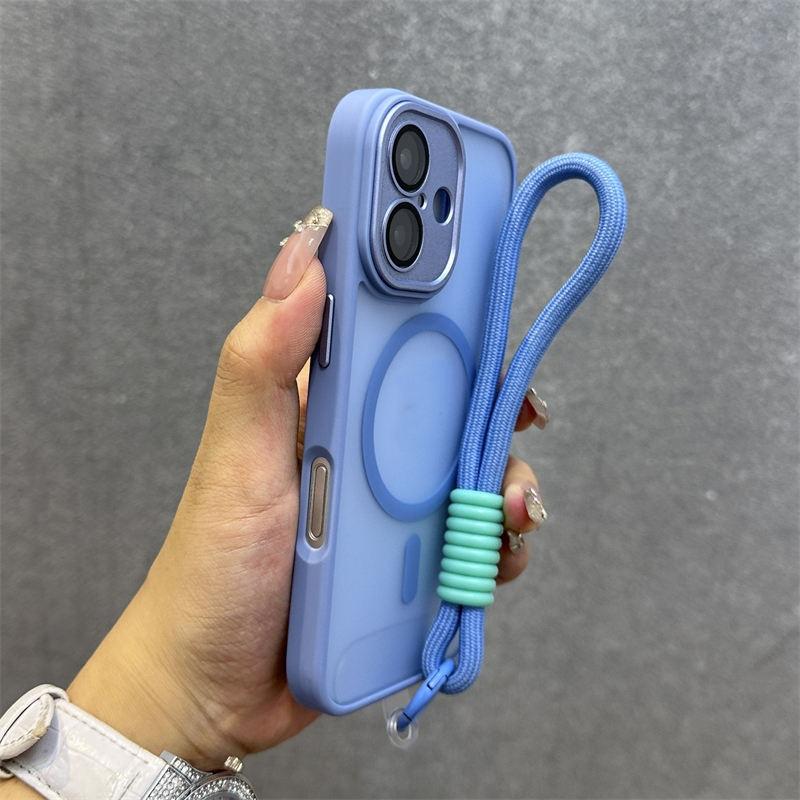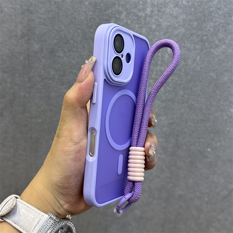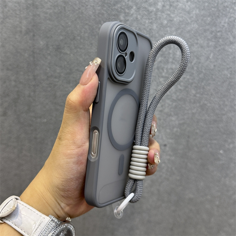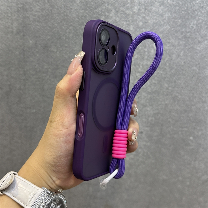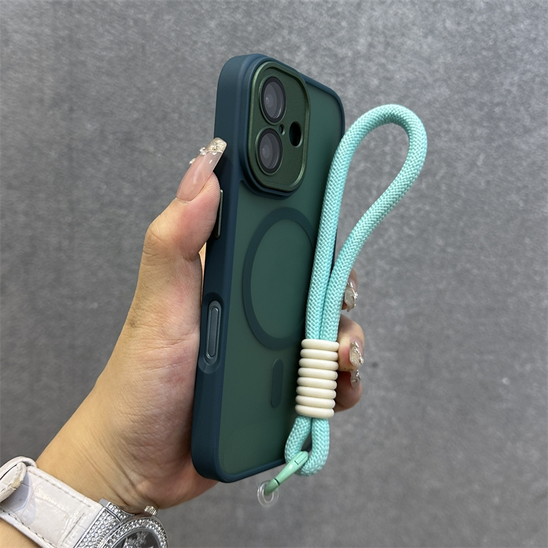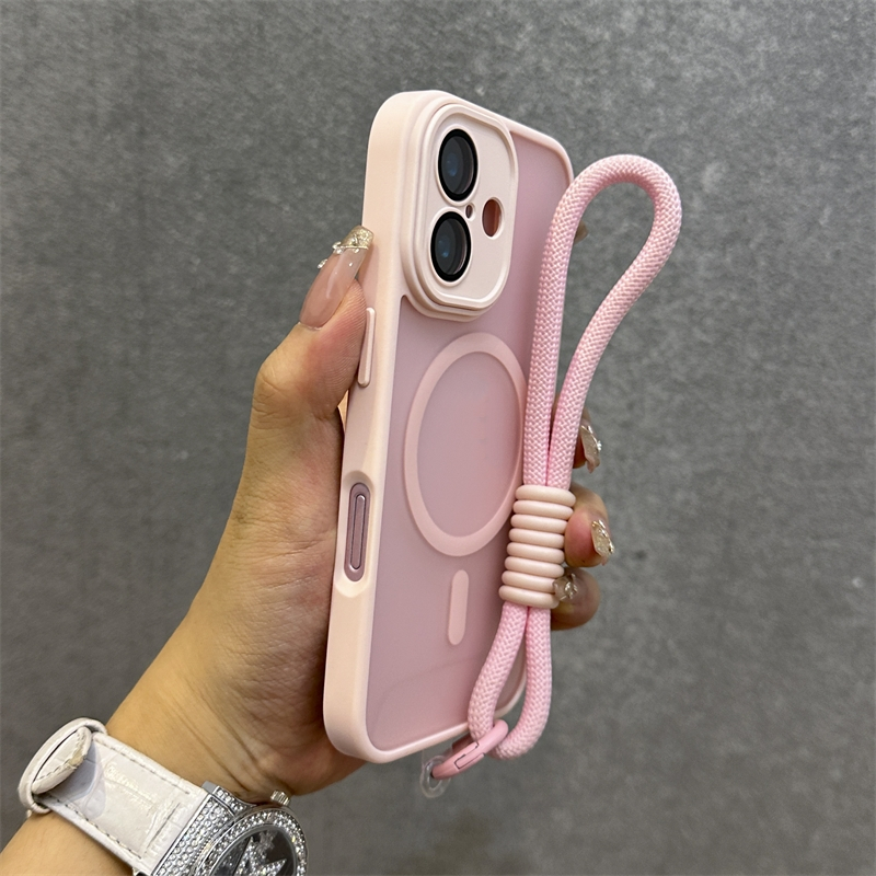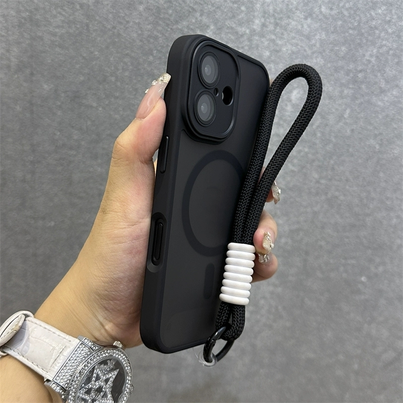 .เคส Iphone พร้อมสายคล้องLuxury Matteโปร่งแสงเคสโทรศัพท์สําหรับiPhone 11 12 13 14 15 16 Pro max 14 15 16 Plusกรณีความงามกันกระแทกขอบนุ่มฮาร์ดพนักพิง