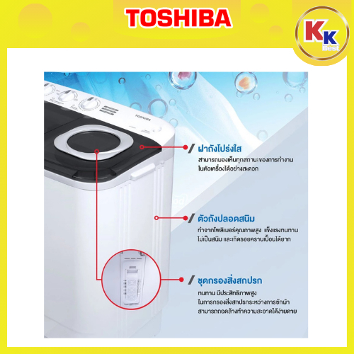เครื่องซักผ้า 2 ถัง จาก TOSHIBA รุ่น VH-H85MT ขนาด 7.5 กิโลกรัม ด้วยการทำงานของจานซักขนาดใหญ่ที่เต็มไปด้วยประสิทธิภาพในการซักอย่างทรงพลังด้วยโปรแกรมการซักถึง 2 ระบบ สามารถเลือกระดับการซักได้ทั้งแบบปกติ