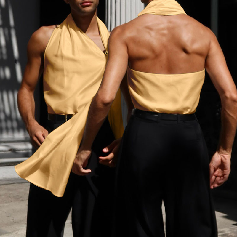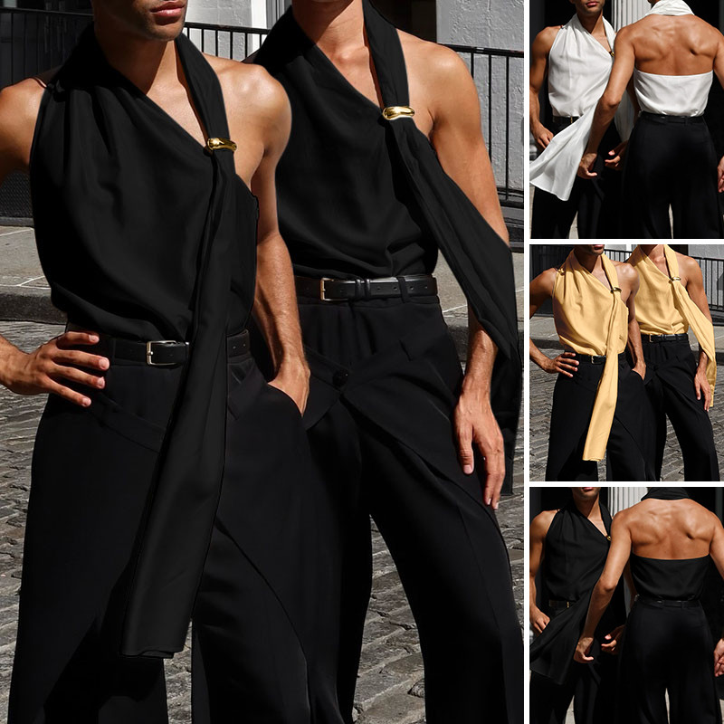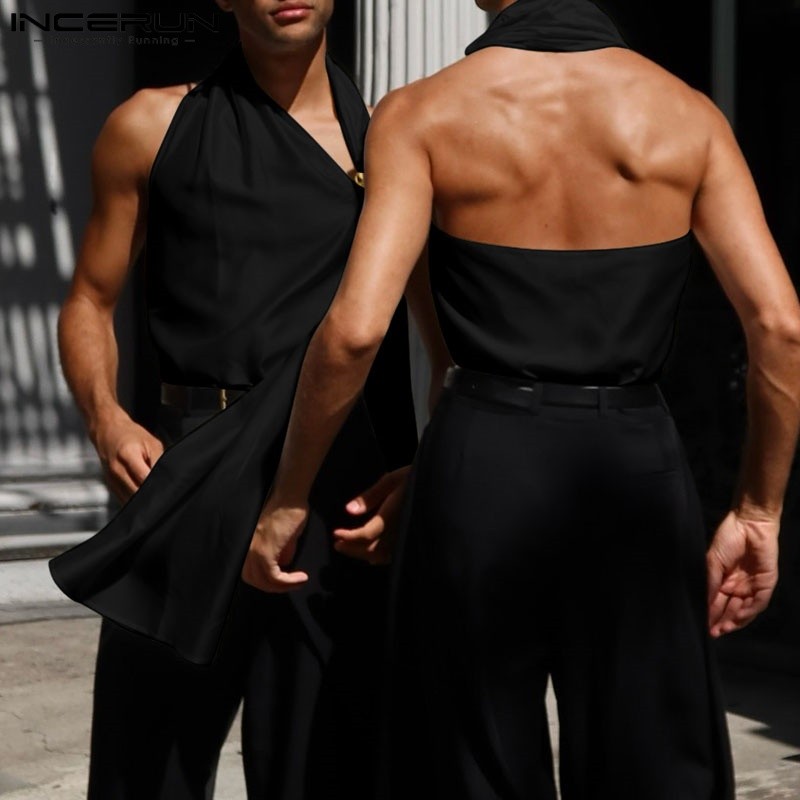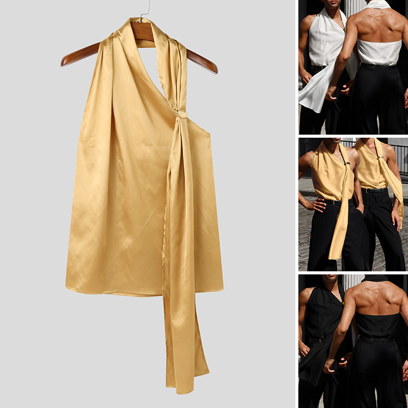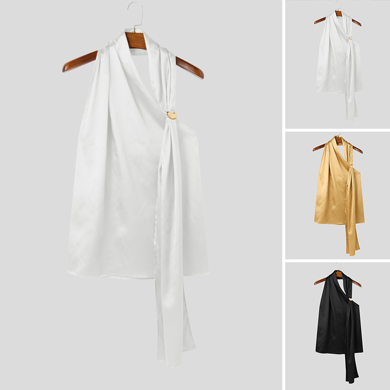Incerun เสื้อกล้ามหัวเข็มขัดโลหะสไตล์เรียบหรูผ้าซาติน