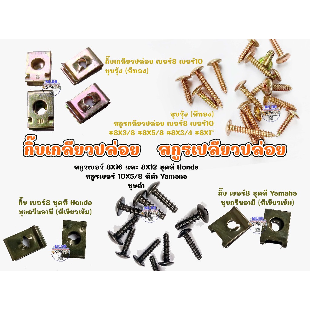 กิ๊บเกลียวปล่อย ชุดสี YAMAHA เบอร์10(#10) ชุบกรีนอามี(สีเขียวเข้ม) ใช้คู่กับสกูรเกลียวปล่อยเบอร์10