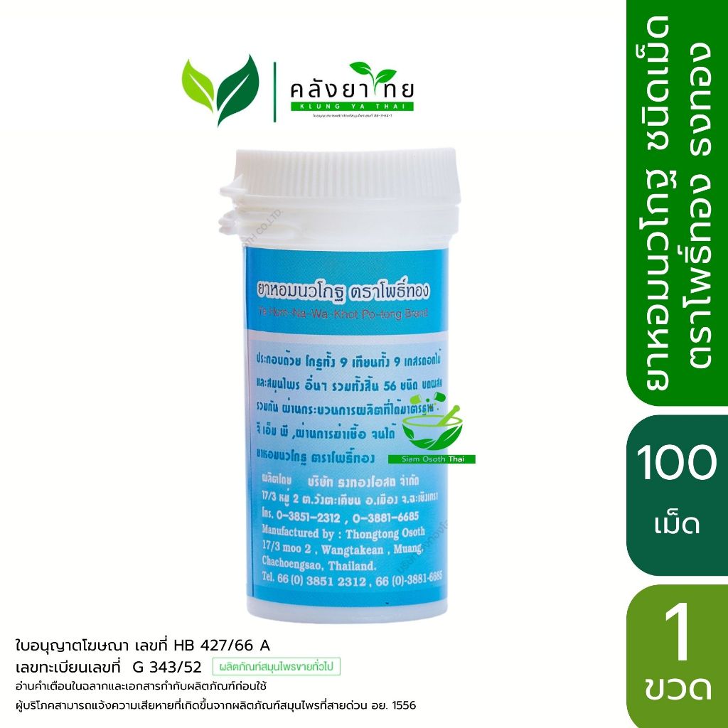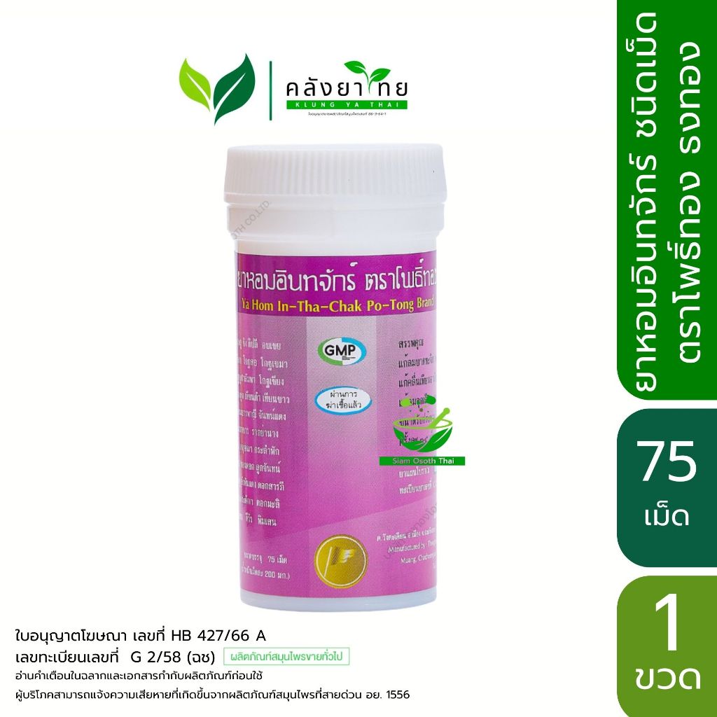 ยาหอม ตราธงทองโอสถ เทพจิตร/นวโกฐ/ทิพโอสถ/อินทจักร ชนิดผง/เม็ด