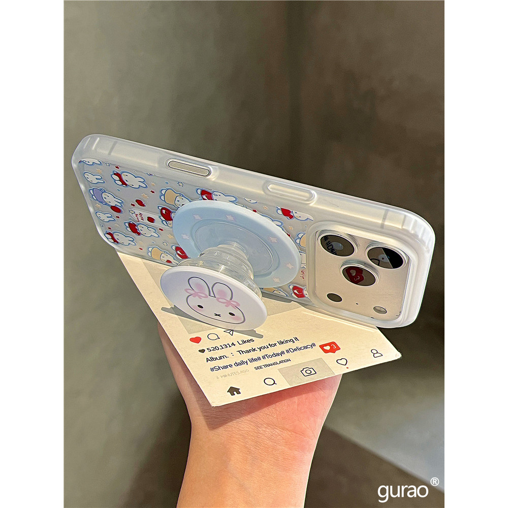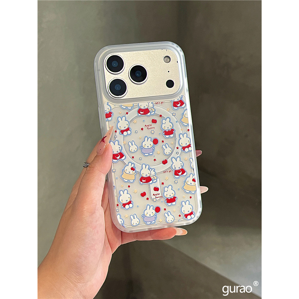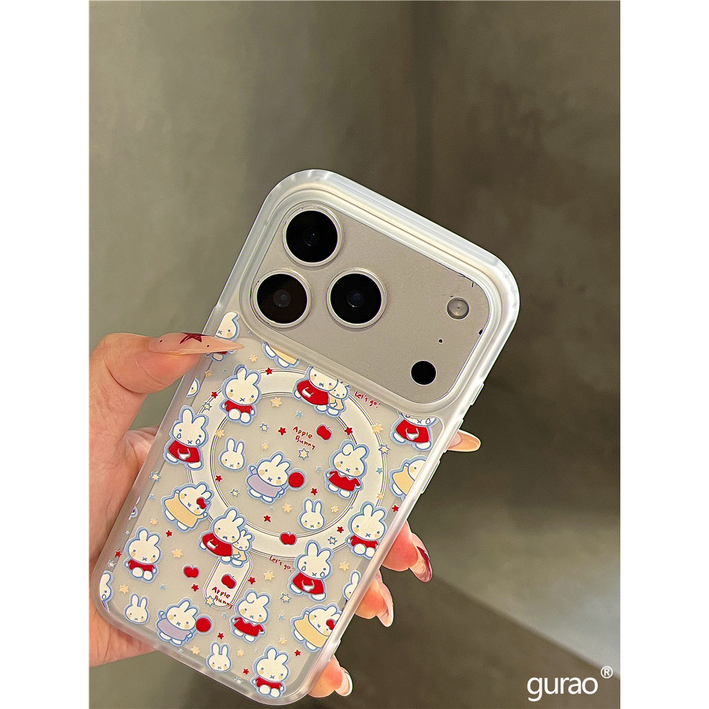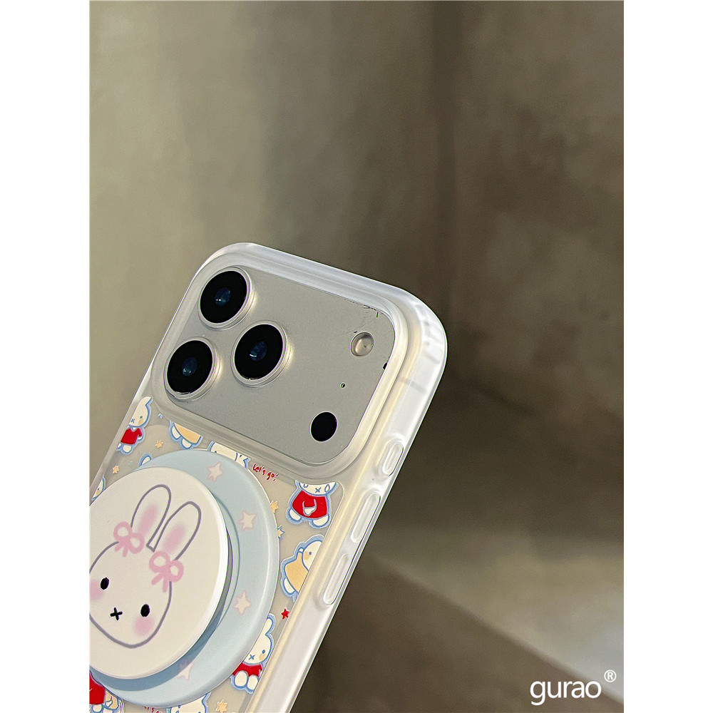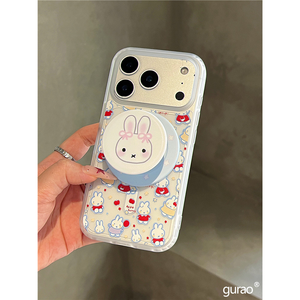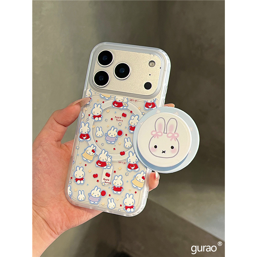 Huiwanju ที่วางดูดแม่เหล็กกระต่ายการ์ตูนเหมาะสําหรับเคสโทรศัพท์มือถือ iPhone17promax iphone16 ผู้หญิงใหม่ 15 matte 17pro ป้องกันการตก 16pro เคสป้องกัน 14