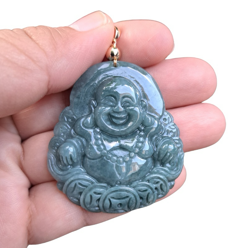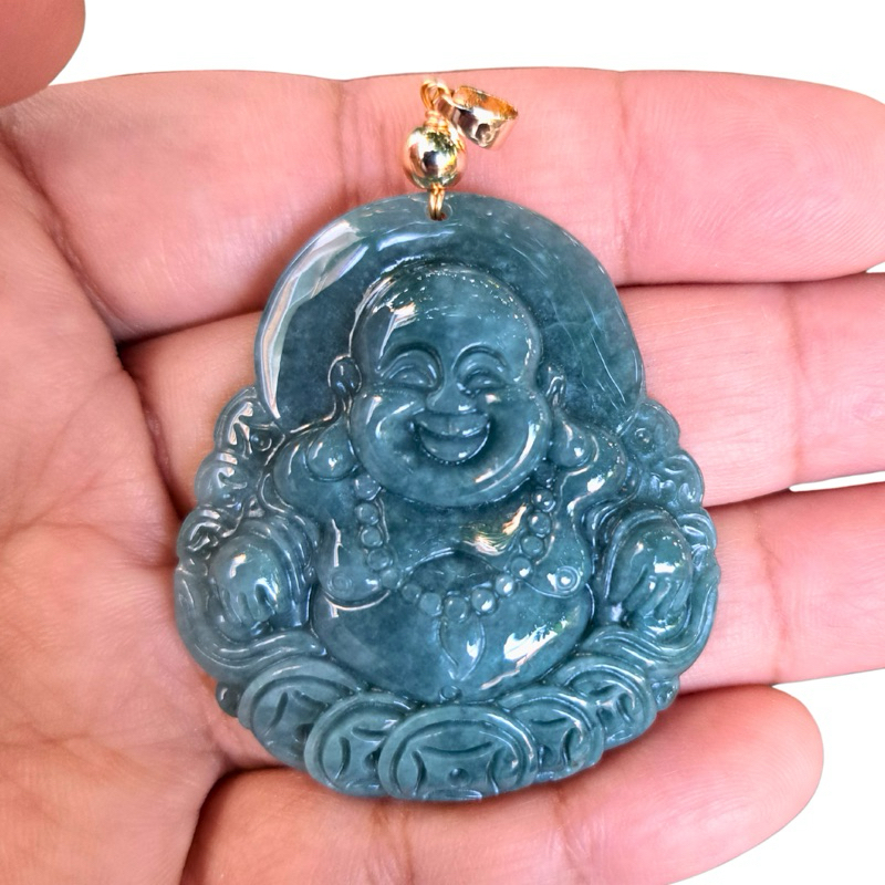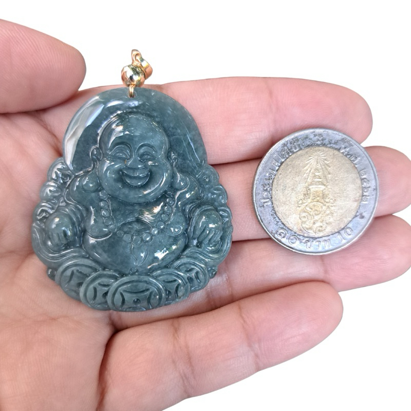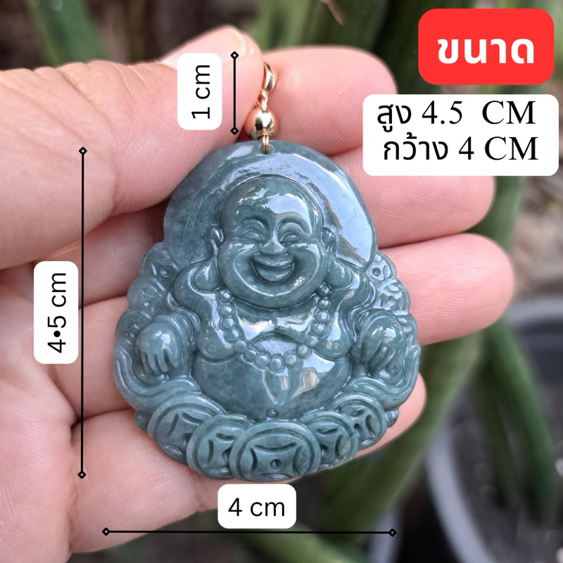 จี้หยกเขียว งานแกะสลัก รูปพระสังกัจจายน์รับทรัพย์ ขนาด 4×4.5 cm พร้อมส่งจากไทย