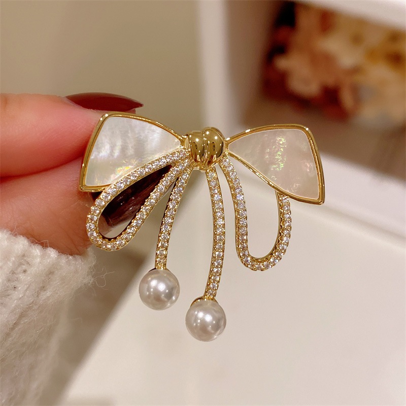 คริสตัลโบว์เข็มกลัด Pin สีขาว Pearl Bowtie ริบบิ้น Pin Rhinesonte Bow Knot ป้ายสําหรับเสื้อผ้ากระเป๋าหมวกกางเกงวันเกิดคริสต์มาสของขวัญ