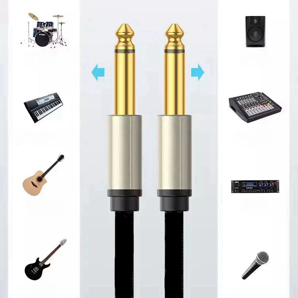 หยิบใส่ตะกร้า1.0M/1.5m/3m/5m6.35มม.แจ็ค6.35มม.1/4 “สายไมโครโฟนสายกีตาร์Mono Audio Auxสายอะแดปเตอร์แจ็คสายสัญญาณเสียงกีตาร์คู่