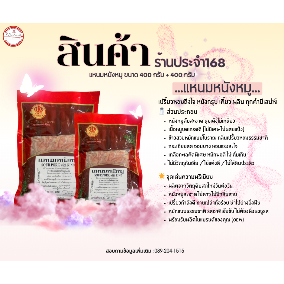 แหนมหนังหมู 400 กรัม – หนังกรอบ เนื้อแน่น รสเปรี้ยวพอดี สูตรหมักสะอาด ได้มาตรฐาน