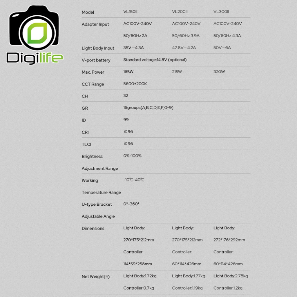 ไฟ LED VL300II เป็น COB LED แบบโมโนไลท์ที่ให้กำลังไฟสูงถึง 320 วัตต์ แสงม