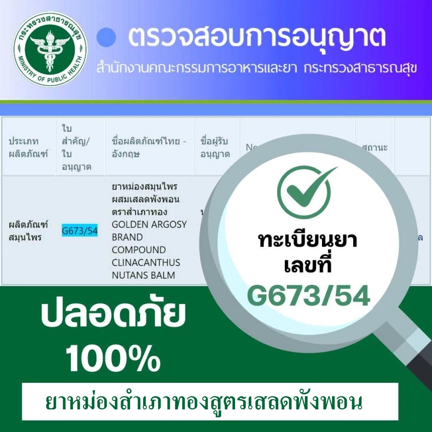 ของชำร่วย-ยาหม่องสมุนไพรสำเภาทอง สูตรเสลดพังพอน ขนาด 10 กรัม (สูตรร้อน)