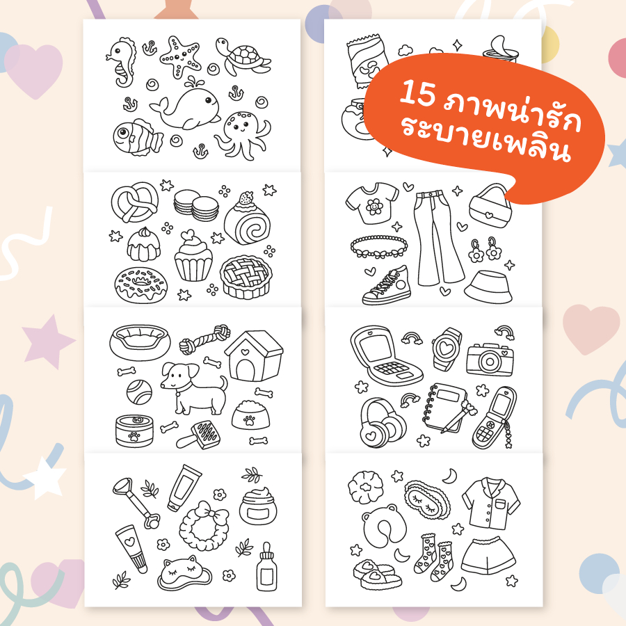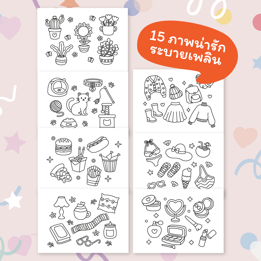 พักหน้าจอ พักโซเชียลแล้วมาระบายสีกัน! ✨สมุดระบายสี Pretty Little Things✨ ที่มากับภาพสวยๆ 15 หน้า ระบายง่าย เหมาะสำหรับคนที่อยากพักจอ ฝึกสมาธิ หรือหากิจกรรทำในยามว่าง สมุดระบายสีเล่มนี้ยังเหมาะกับผู้ปกครองที่อยากใช้เวลาร่วมกับเด็กๆ ระบายได้ทั้งเด็กและผู้ใ