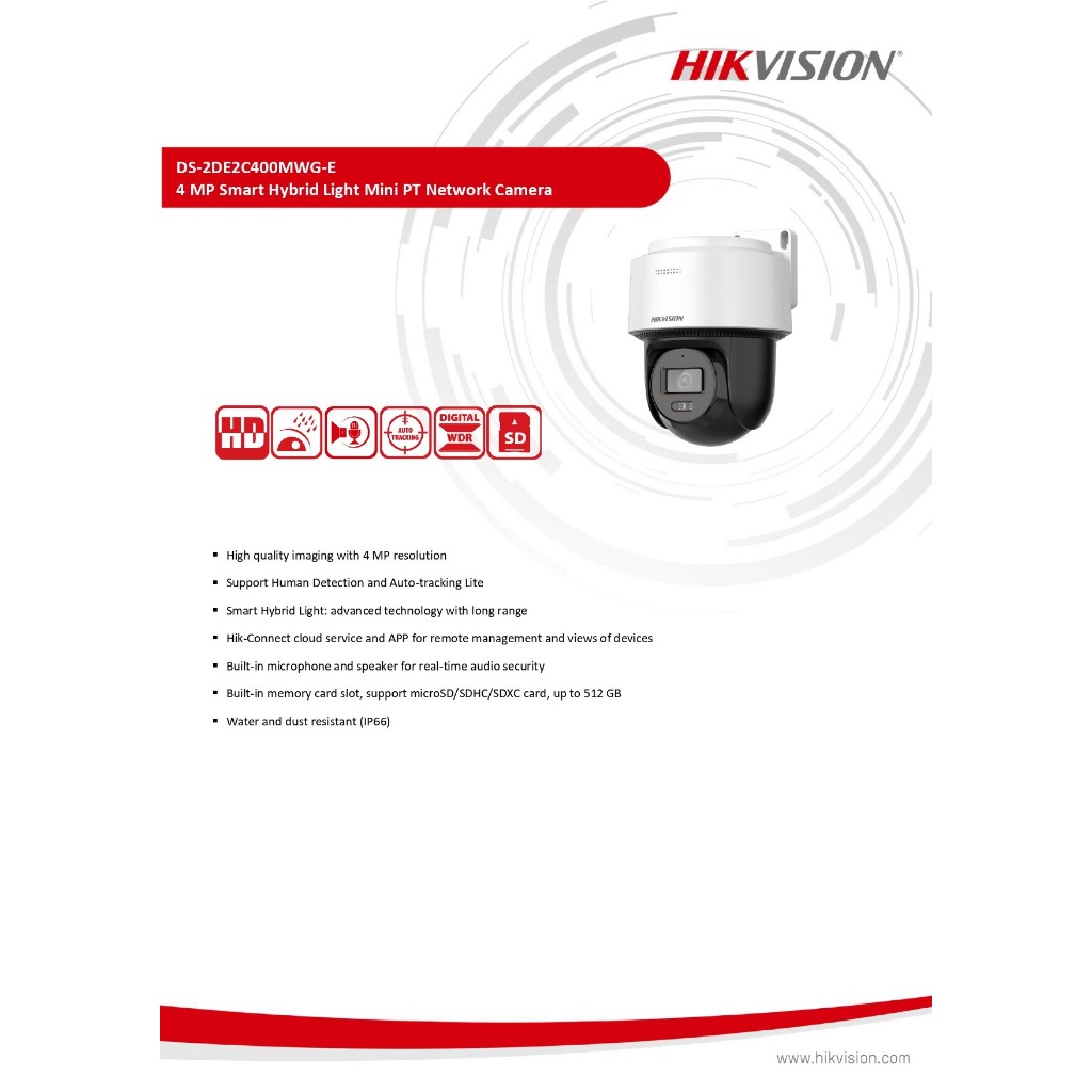 หยิบใส่ตะกร้า***ไม่ใช่กล้อง Wi-Fi*** HIKVISION กล้องวงจรปิด IP 4MP คุยโต้ตอบได้ PAN&TILT DS-2DE2C400MWG-E 2.8mm