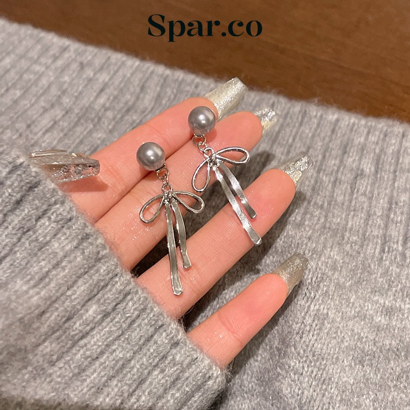 spar.co สีเทามุกยาวโบว์สตั๊ดต่างหูโบว์ยาวพู่ต่างหูผู้หญิงรักต่างหูสตั๊ดระเบิดอารมณ์ต่างหู SP-1315