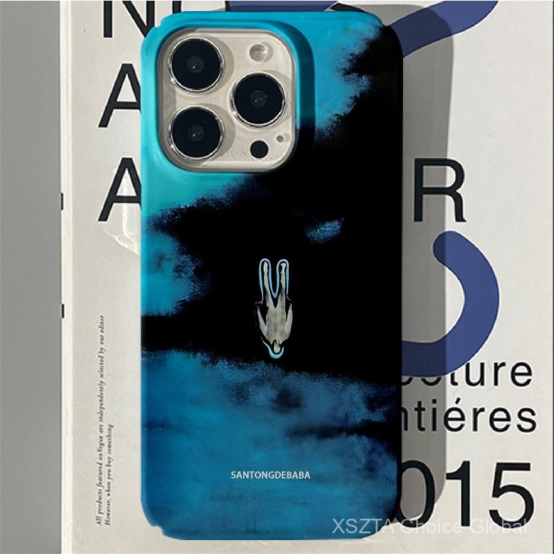 สีดำและสีฟ้า handstand สำหรับ IPhone16 15 14 13 12 11 PRO MAX x XR XS สูงสุด8 7 6S PLUS SE 2020 Bright ก๋วยเตี๋ยวสี่ขนมปังป้องกันกล้องกันกระแทกฝาหลังเคสโทรศัพท์
