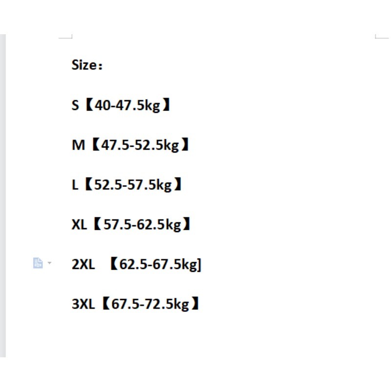 | Model | สีเบจ, S 【40-45kg】, สีเบจ, M 【45-50kg】, สีเบจ, L 【50-55kg】, สีเบจ, XL 【55-65kg】, สีเบจ, 2XL 【65-70kg】, สีเบจ, 3XL 【70-80kg】, สีเทา, S 【40-45kg】, สีเทา, M 【45-50kg】, สีเทา, L 【50-55kg】, สีเทา, XL 【55-65kg】, สีเทา, 2XL 【65-70kg】, สีเทา, 3XL 【70-80kg】, สีม่วง, S 【40-45kg】, สีม่วง, M 【 |