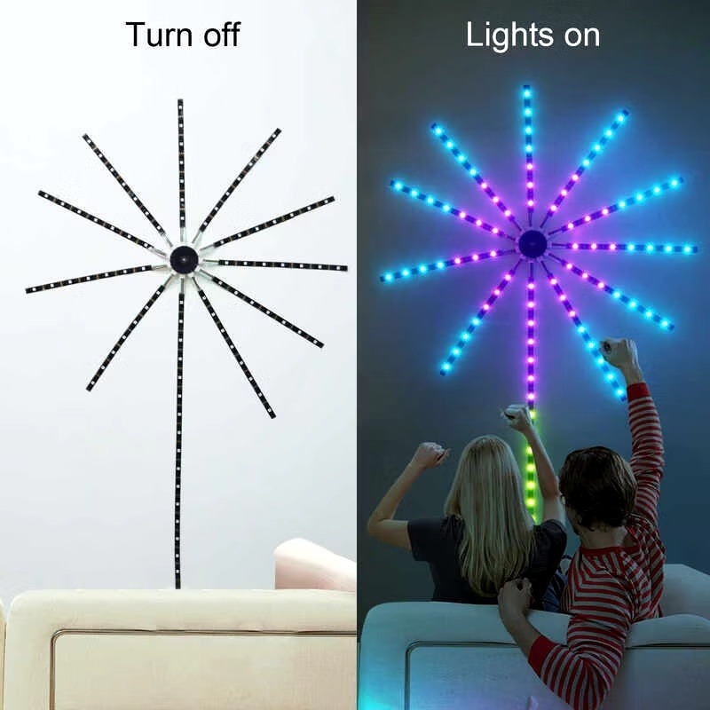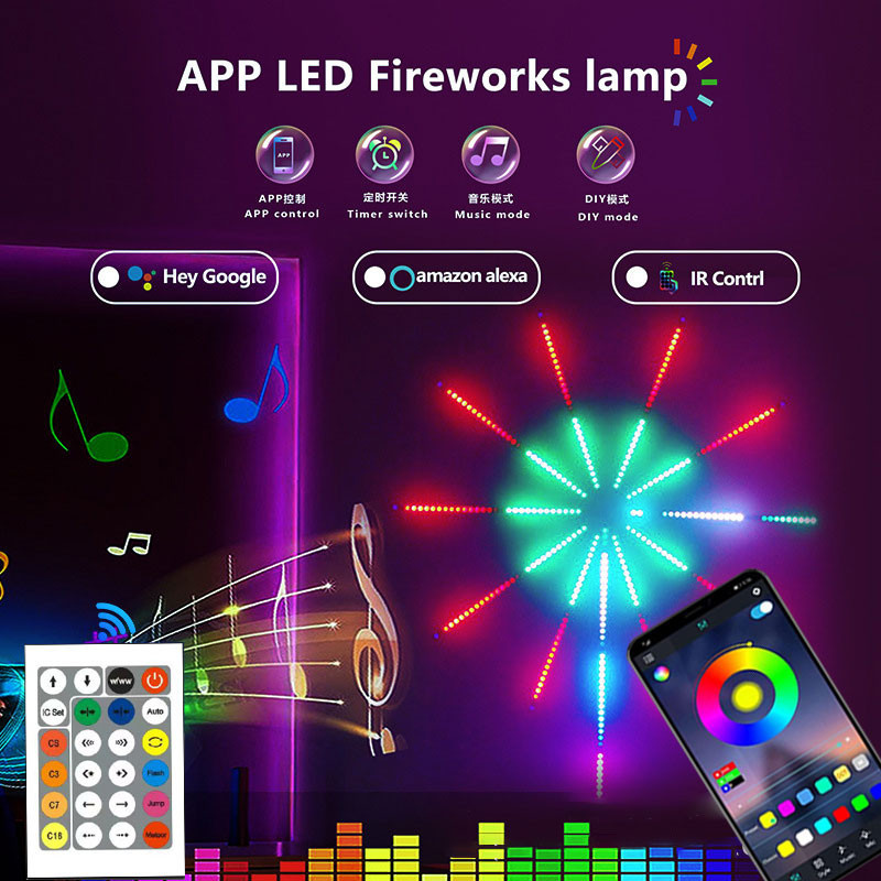 ไฟพลุ 180LED Music Sound Sync ไฟ RGB พร้อม APP รีโมทคอนโทรลไฟคริสต์มาส Strip Firework ไฟเพลง Sound Sync Party ตกแต่งคริสต์มาส RGB Light