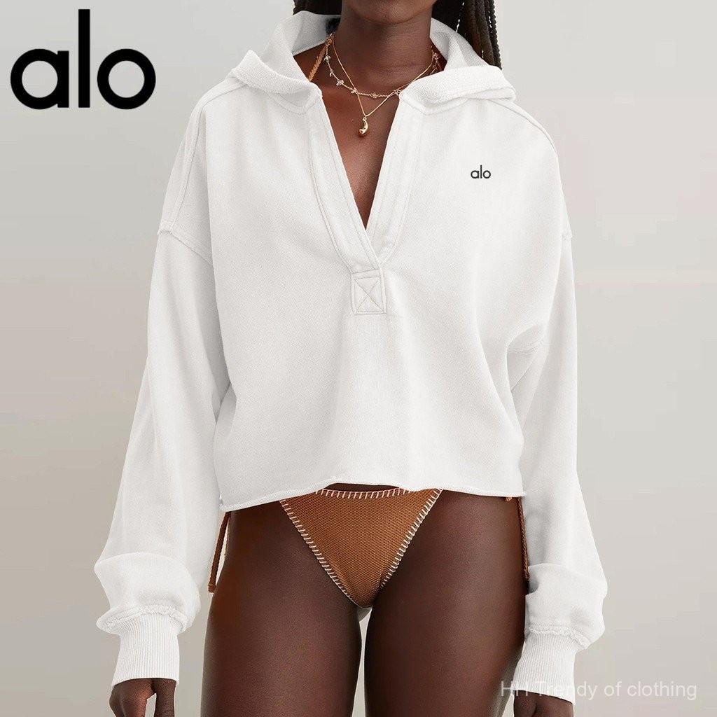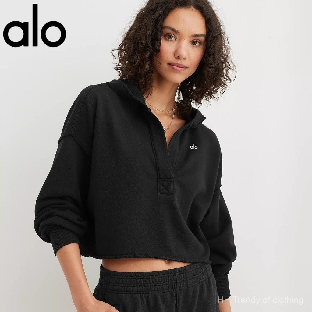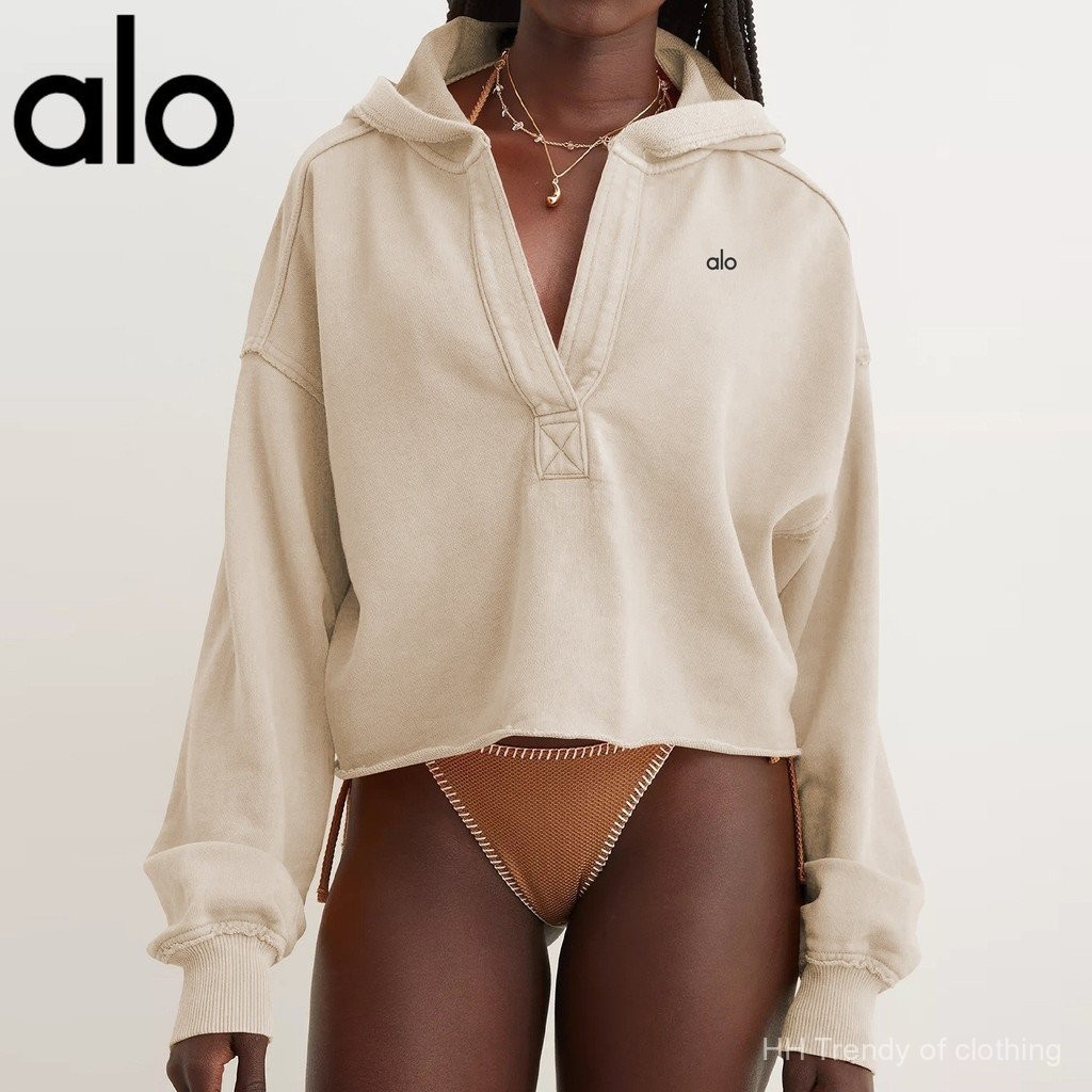 alo yoga เสื้อสเวตเตอร์โยคะสำหรับผู้หญิงเสื้อสวมหัวคอวีแขนยาวเสื้อโค้ทถักแขนลดไหล่ชุดโยคะมีฮู้ดสำหรับออกกำลังกาย