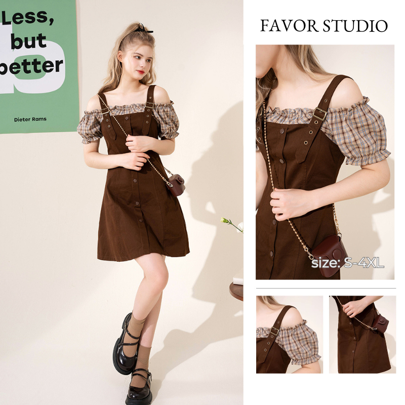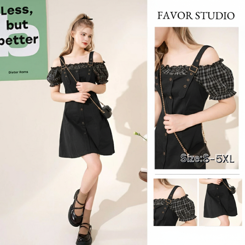 🎀 เดรสเอี๊ยมแฟชั่น สไตล์เกาหลี ทรงสวยสองชิ้นหลอก
