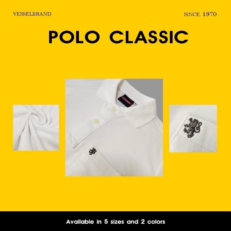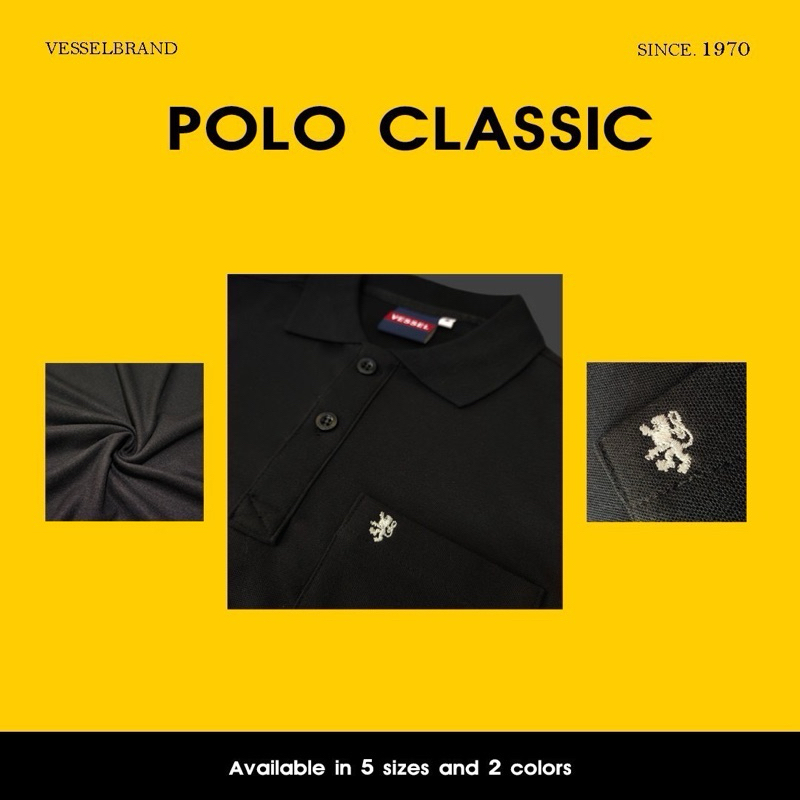 VESSEL เสื้อโปโล-รุ่นมีกระเป๋าปักสิงห์เล็ก ทรงชาย-ทรงหญิง