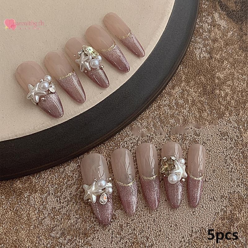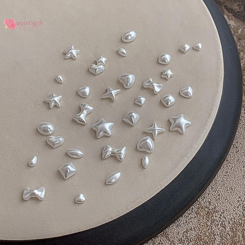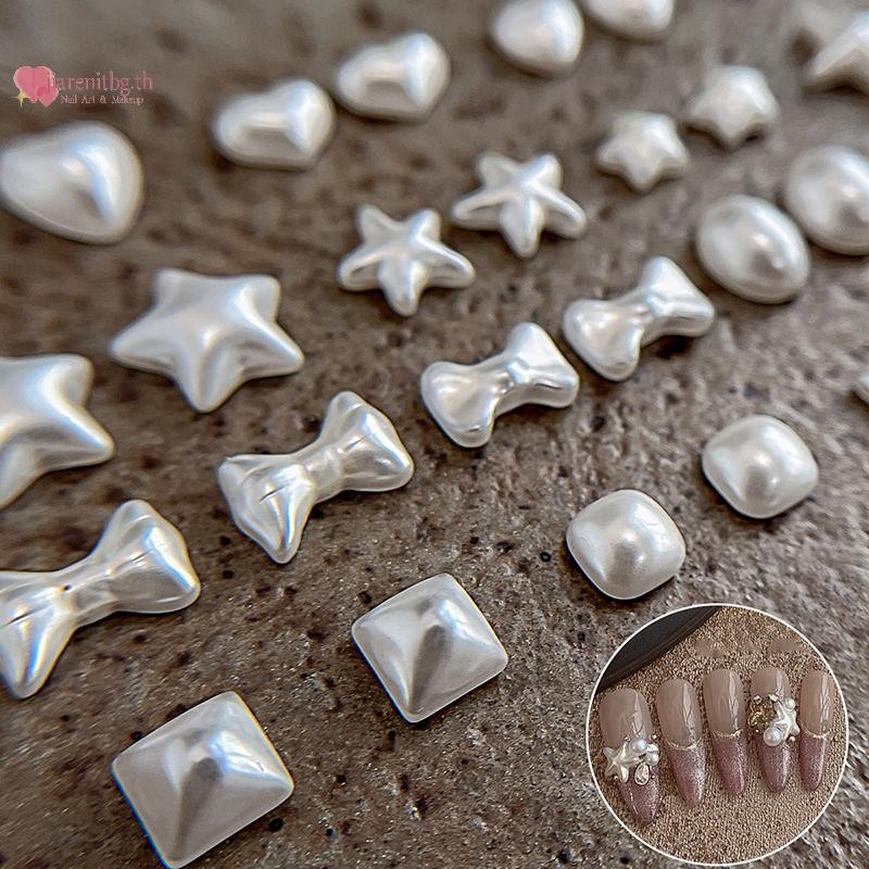 RENBG 5 ชิ้นไข่มุกสีขาวเล็บลูกปัด Rhinestone Pentagram คละไซส์ Beige ไข่มุกสําหรับ DIY ตกแต่งเล็บลูกปัดตกแต่งเล็บ TH