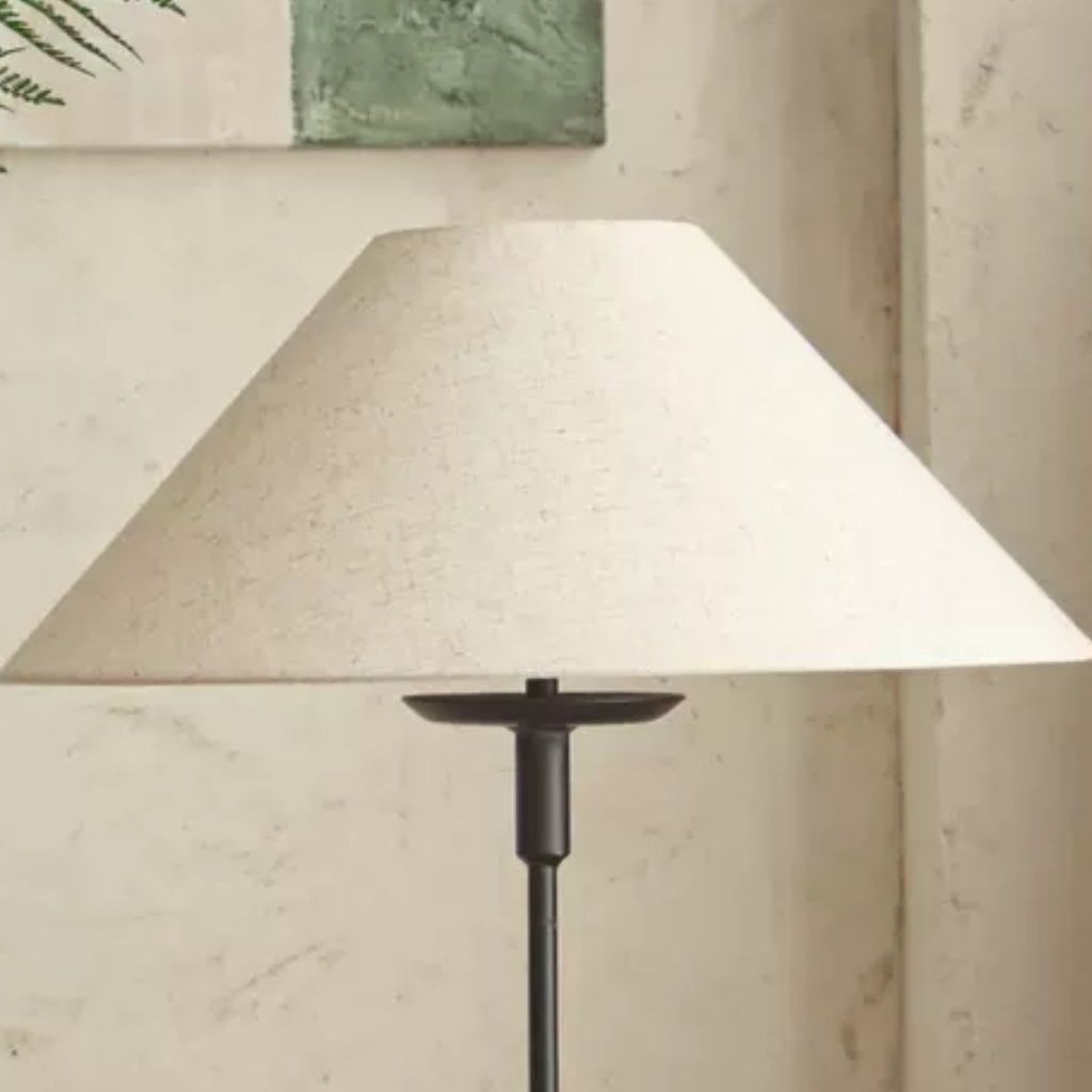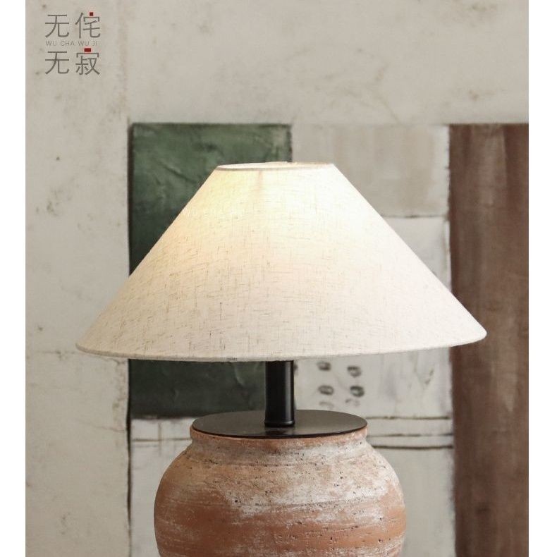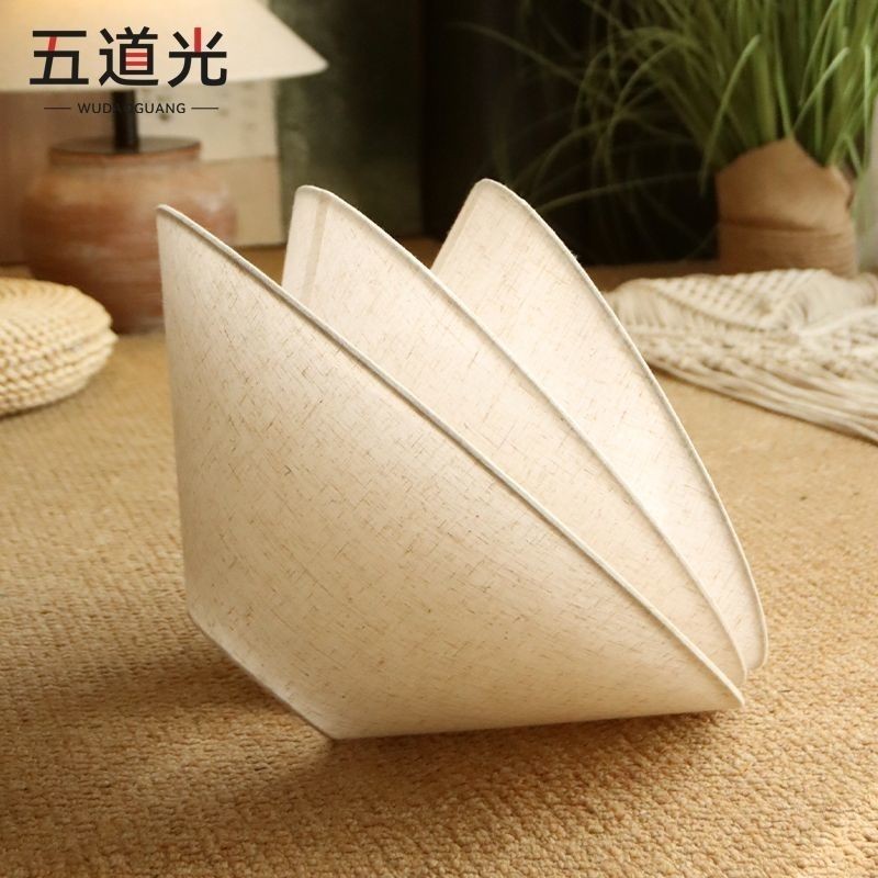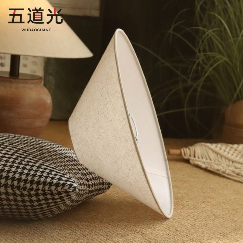 โคมไฟหมวกไม้ไผ่ผ้าลินินโป๊ะโคมไฟตั้งโต๊ะสไตล์วาบีซาบีอุปกรณ์เสริมโคมไฟข้างเตียงห้องนอน E27 โคมไฟตั้งพื้นเปลือกหอย