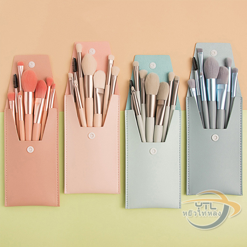 8pcs Mini Travel Women แปรงแต่งหน้ายูนิคอร์นชุดแบบพกพาซอฟท์คอนซีลเลอร์รองพื้นความงามอายแชโดว์เครื่องมือแปรงขนตาพร้อมกระเป๋า