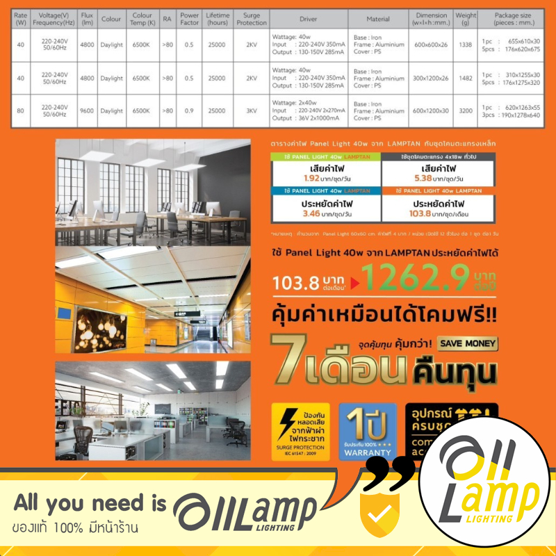 Lamptan โคมไฟ LED 80w Panel 60×120 ซม ติดเพดาน รุ่น Nero Bravo V2 แสง 6500K