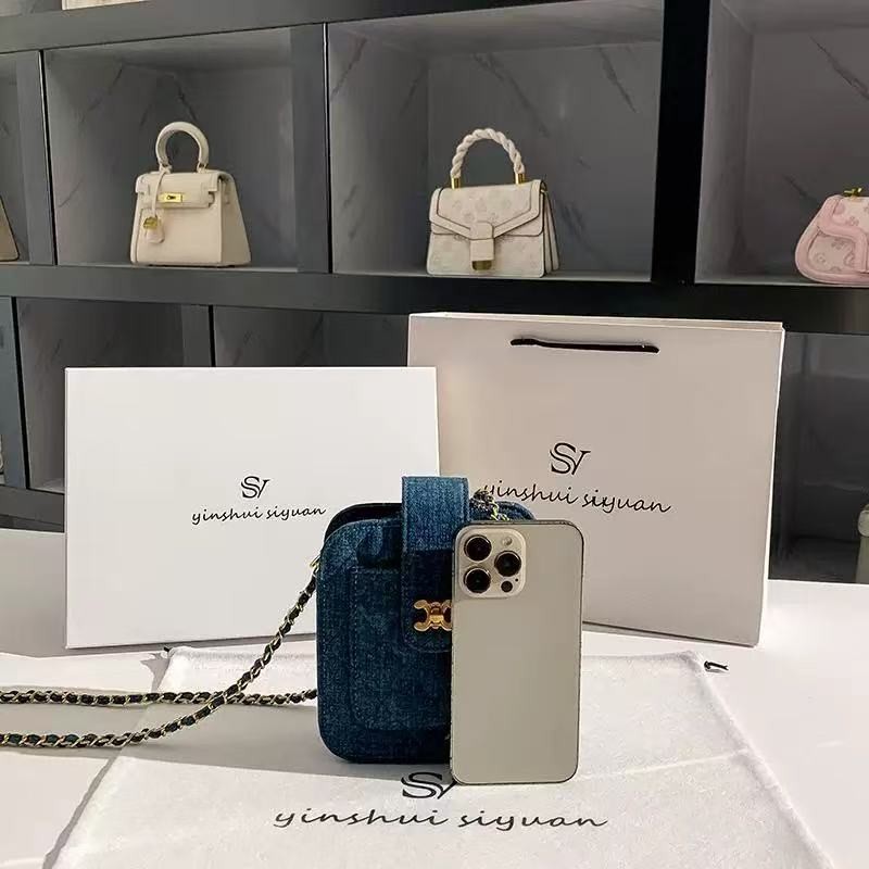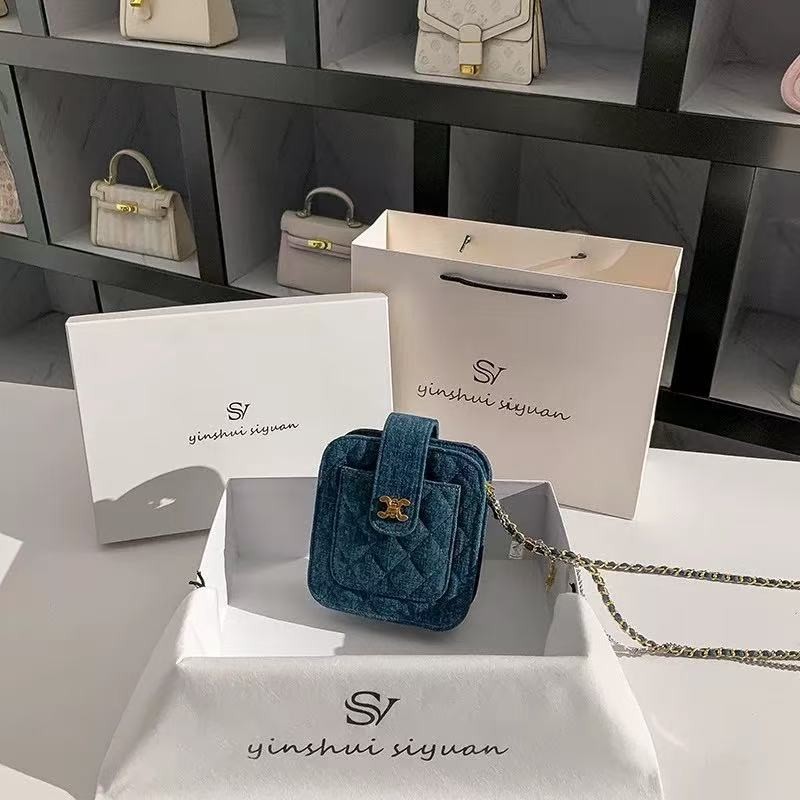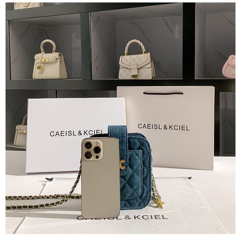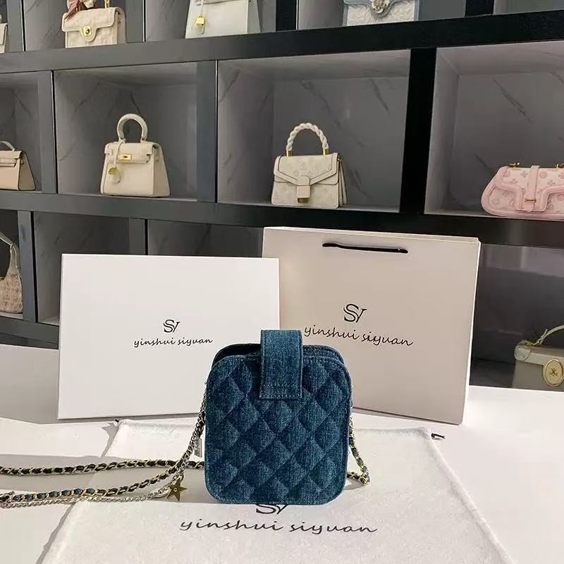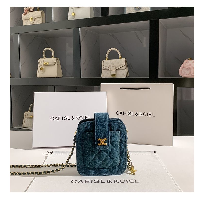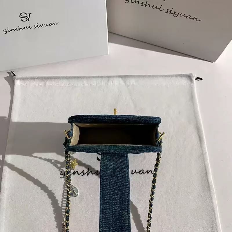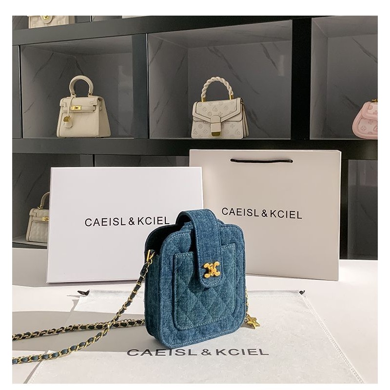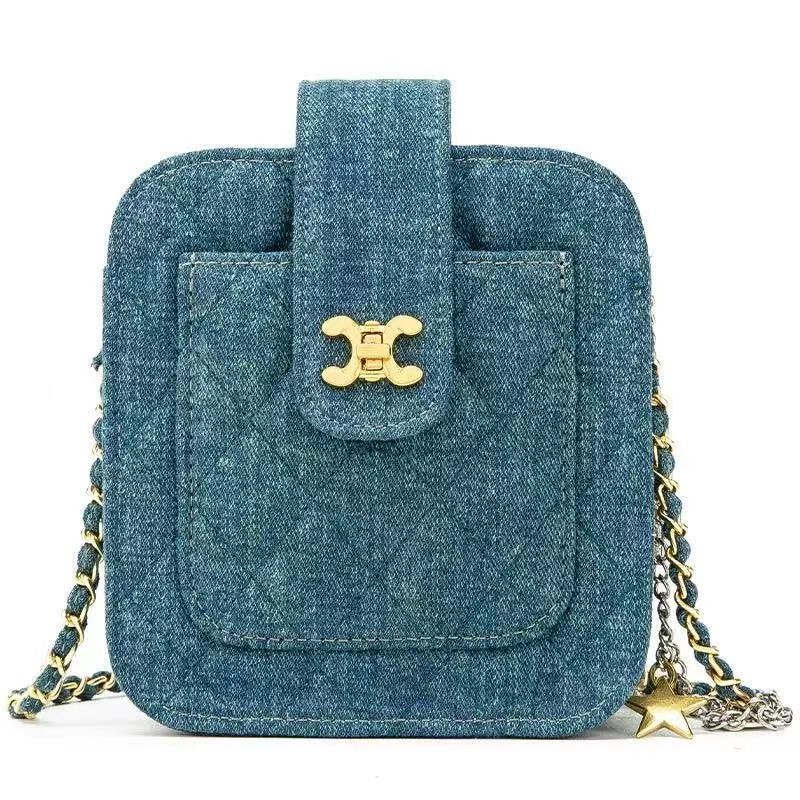 ใหม่หรูหราแสงเดนิมเพชรกระเป๋าโซ่พร็อพทุกจับคู่กระเป๋า Messenger High-End