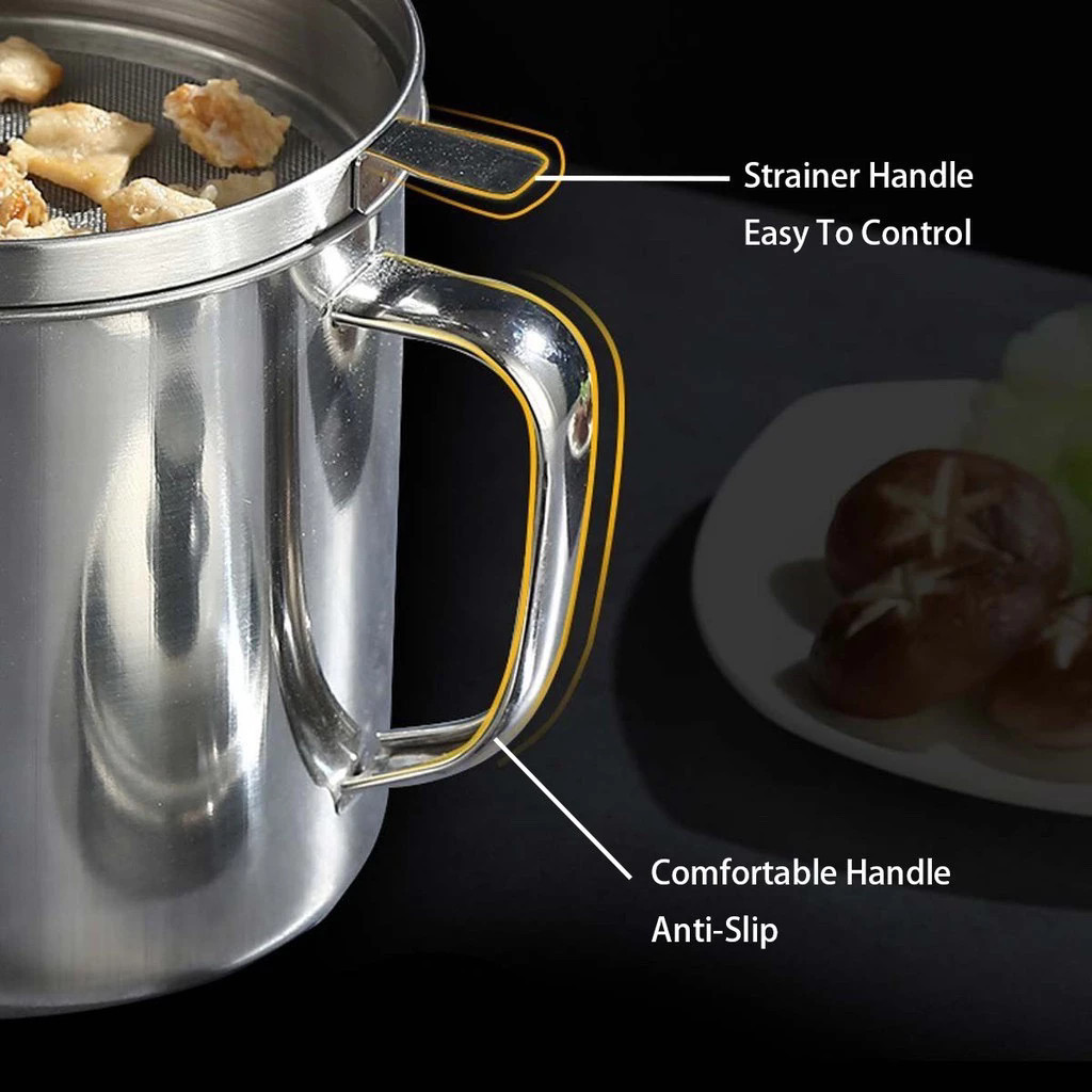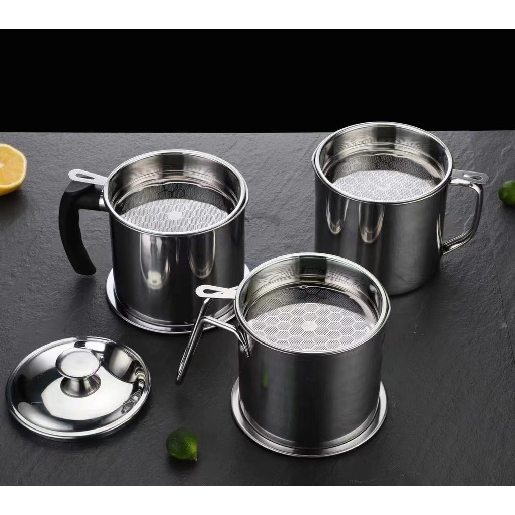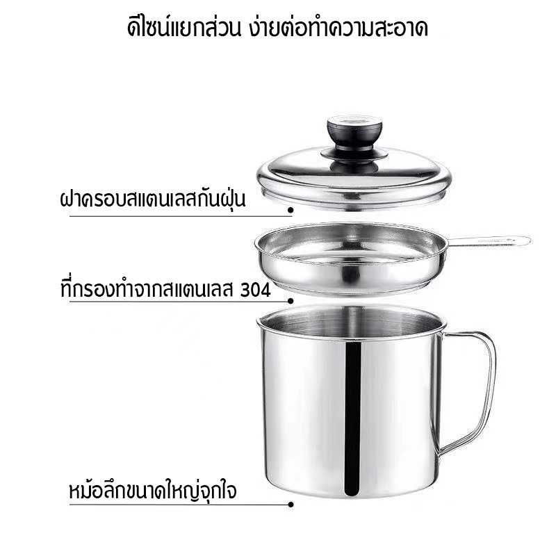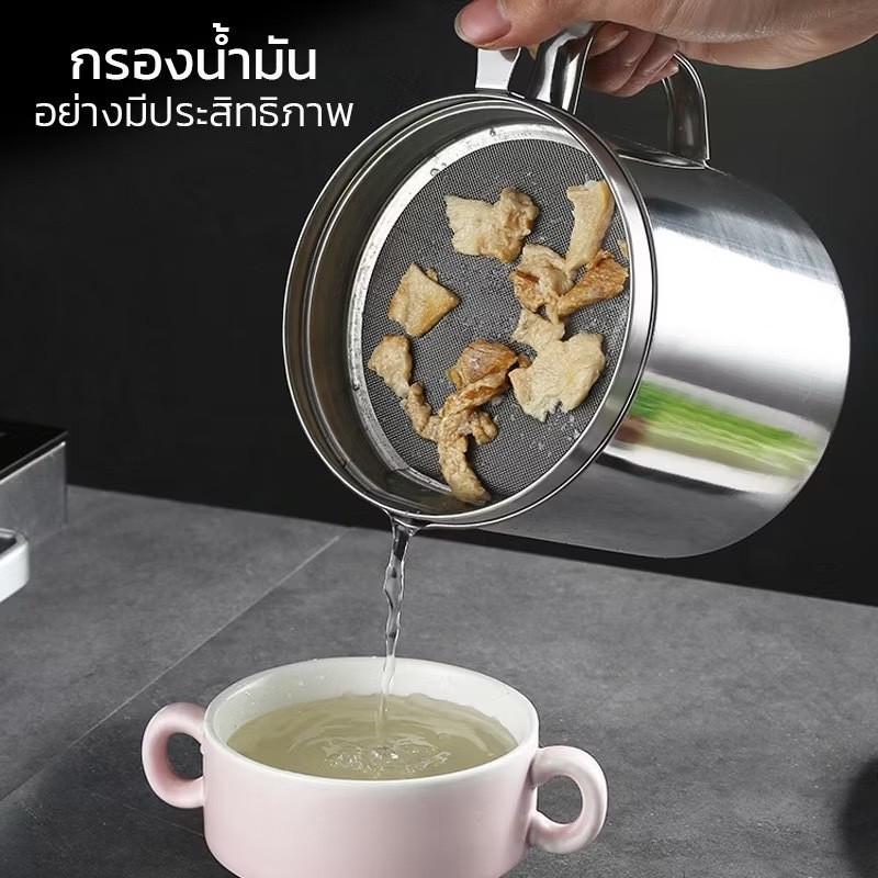 ถ้วยกรองน้ำมัน หม้อกรองน้ำมัน หม้อกรอง โถใส่น้ำมันสไตล์ญี่ปุ่น ทนความร้อน 12 ซม สแตนเลส ความจุ 1.3 ลิตร
