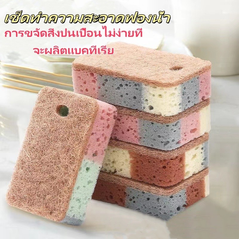 – มี 2 ด้านไว้สำหรับใช้งานได้สองแบบ ทั้งขัด และถนอมผิวพาชนะ – ใช้งานเหมาะมือ – ด้านอ่อนไว้ใช้งานหลายหลายเช่น กวาดเศษอาหาร ล้างจาน แก้ว – ด้านแข็งที่มีใย ไว้ใช้ขัดหม้อ ขัดกะทะ หรือแม้แต่ ขัดอ่างล้างจาน – ฟองน้ำแห้งไว และคุณภาพดีมาก ไม่เก็บกลิ่น ไม่ขาด หร